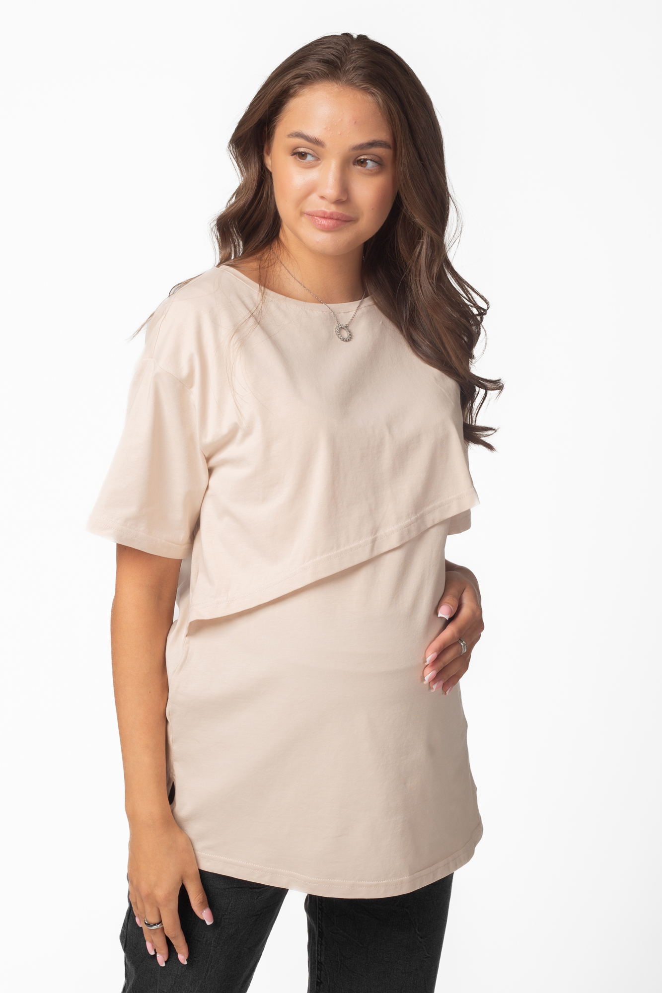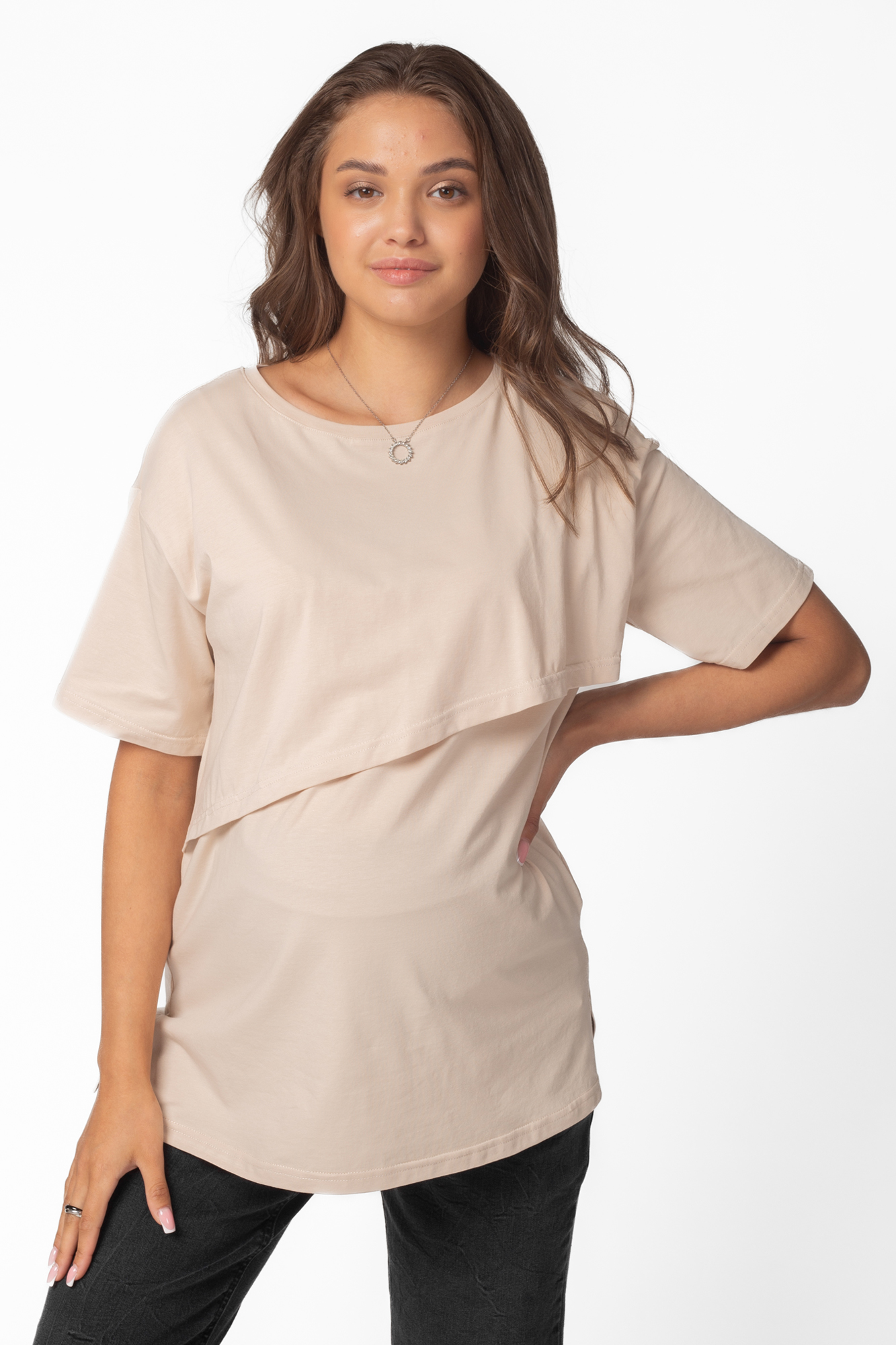 Футболка для беременных и кормящих 12549 бежевый