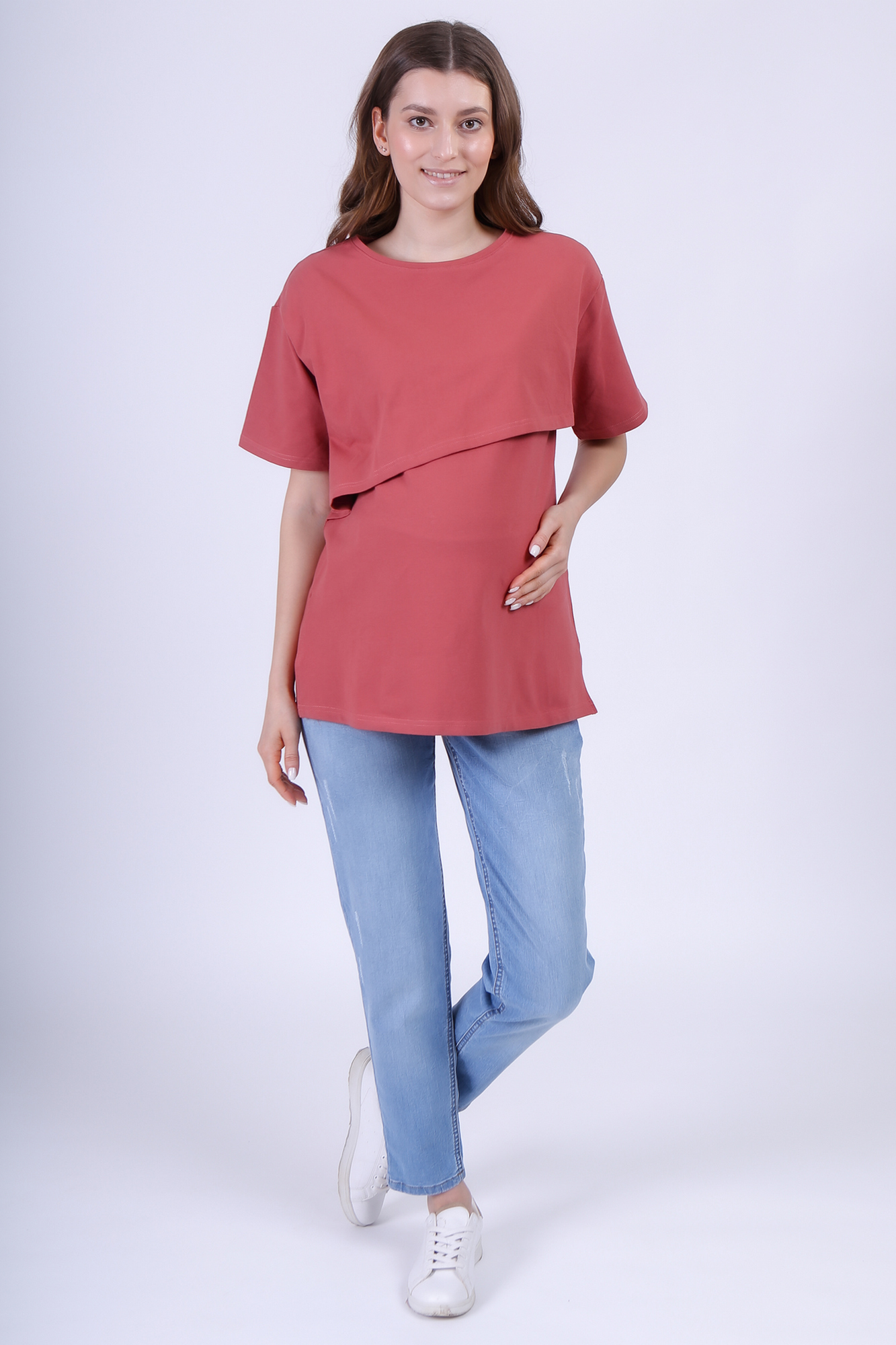 Футболка свободного кроя для беременных и кормящих выполнена из хлопкового трикотажа. Благодаря фасону оверсайз футболку можно носить на любом сроке беременности и после нее. Специальная конструкция позволяет комфортно покормить малыша в любой ситуации.