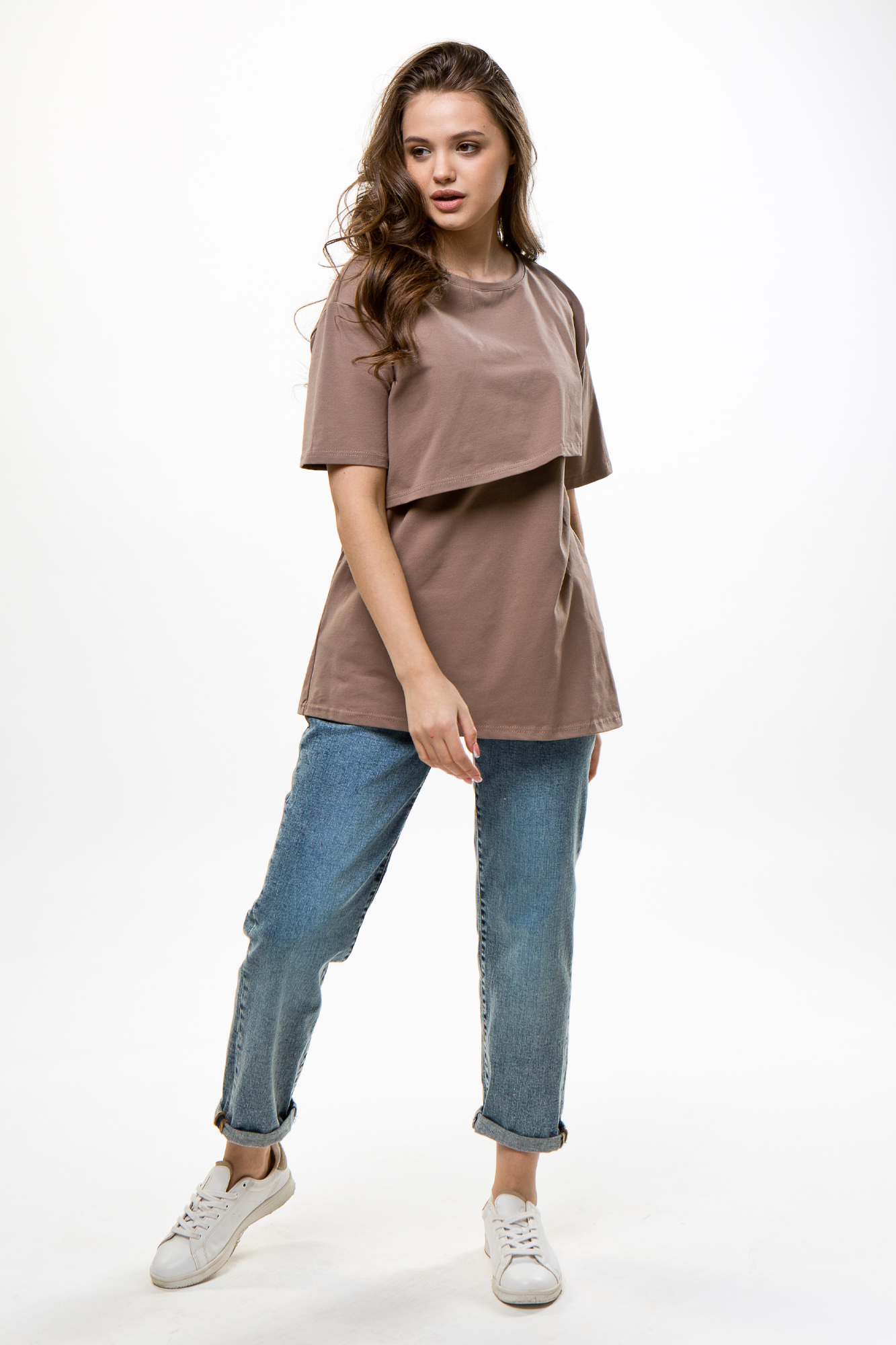 Футболка свободного кроя для беременных и кормящих выполнена из хлопкового трикотажа. Благодаря фасону оверсайз футболку можно носить на любом сроке беременности и после нее. Специальная конструкция позволяет комфортно покормить малыша в любой ситуации.