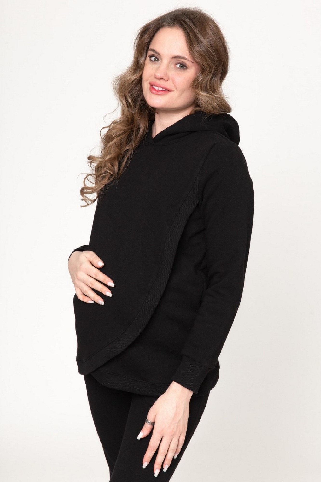 Утепленное худи для беременных и кормящих выполнено из высококачественного трехниточного футера с начесом. Особый крой позволяет носить изделие на всем протяжении беременности и после нее. Благодаря специальной конструкции с запахом Вы сможете покормить малыша с комфортом в любой ситуации.