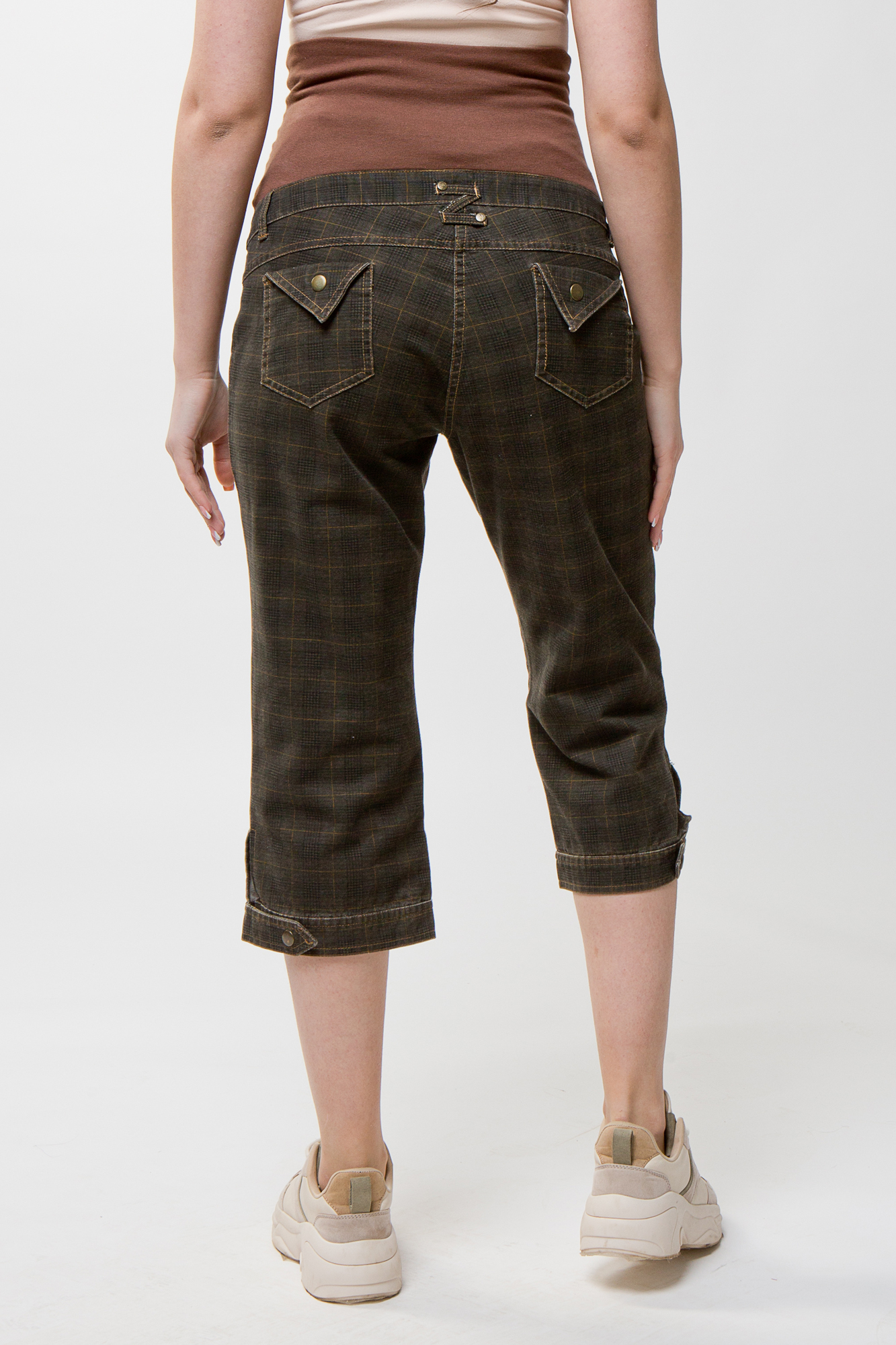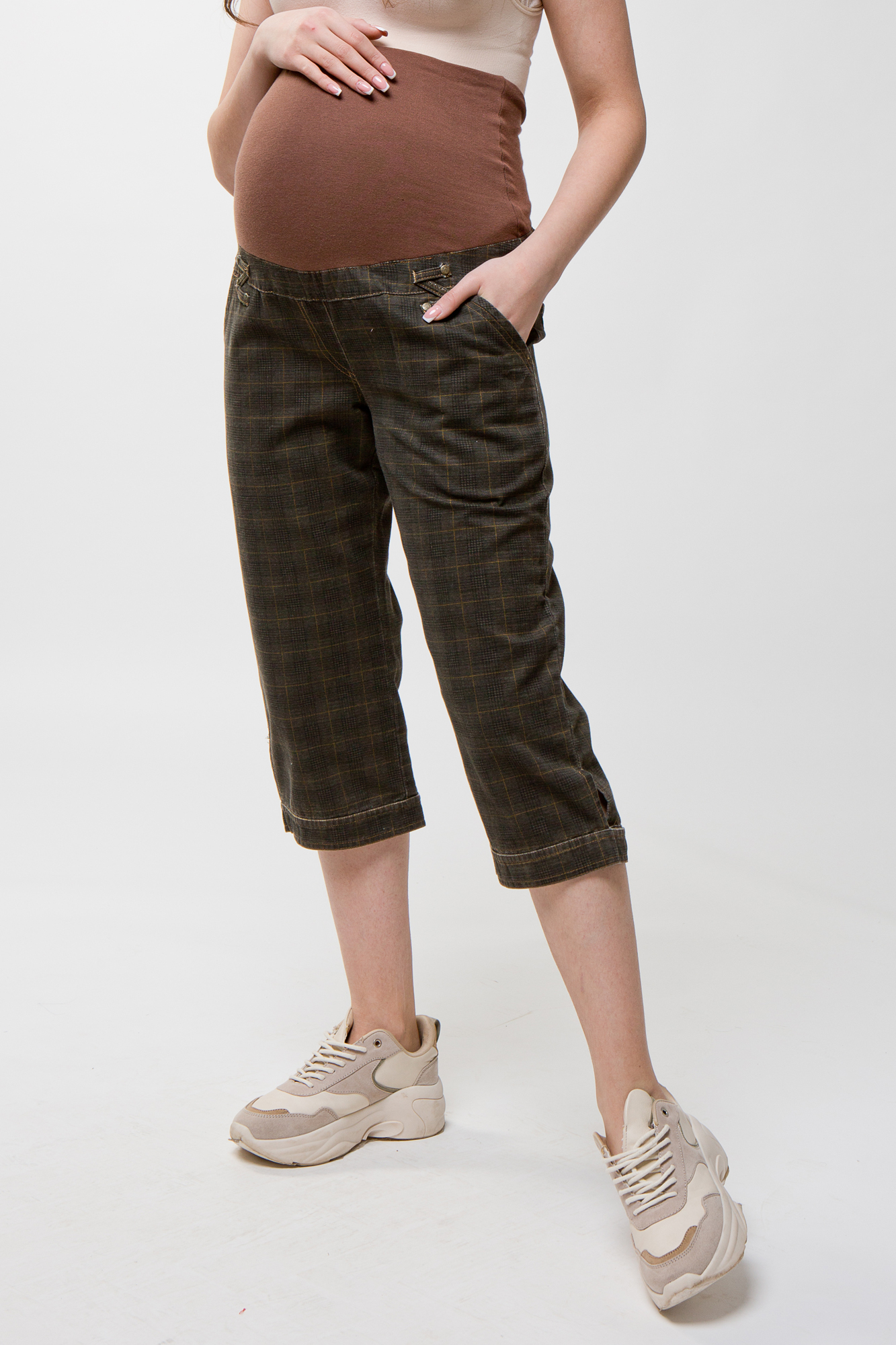 Капри в клетку для беременных. Широкий эластичный бандаж позволит носить капри на любом сроке беременности и после неё. Капри подойдут для работы в офисе и на каждый день.