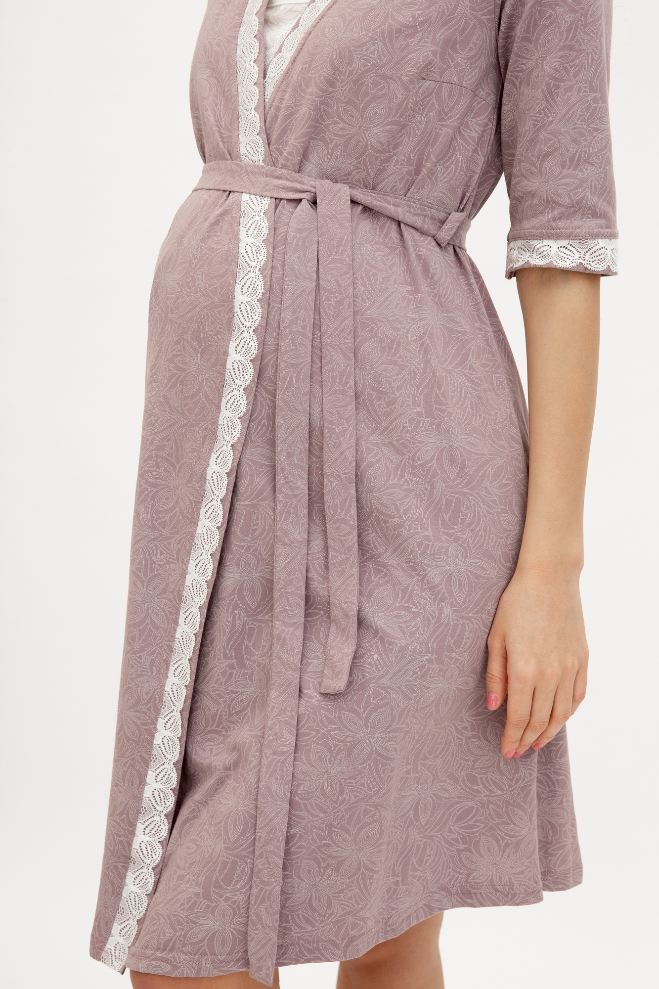 Удобный и практичный комплект для беременных и кормящих мам. Комплект состоит из халата с рукавом до локтя и сорочки для кормления. Халат на запах, с поясом, свободный крой позволит носить его на любом сроке беременности. Ночная сорочка для сна прекрасно подойдет для беременных, в ней можно быстро и удобно покормить малыша, просто оттянув в сторону боковые проймы внутренней майки в сорочке. Нежная расцветка придаст вам обворожительный романтичный образ. Комплект настолько удобен, что его можно носить до начала и после окончания периода беременности и грудного вскармливания.