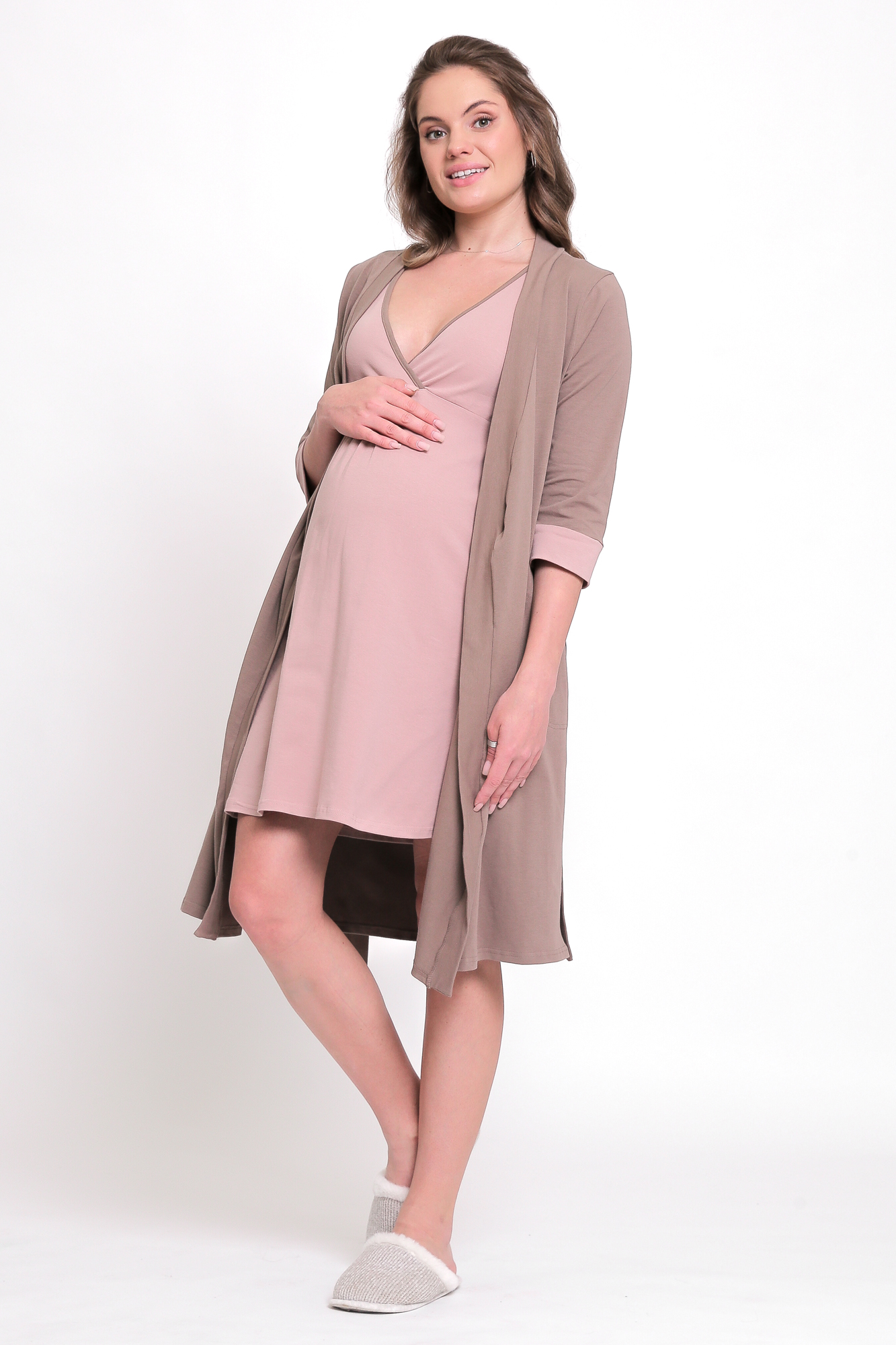 Комплект для беременных и кормящих с халатом и сорочкой 12740 мокко