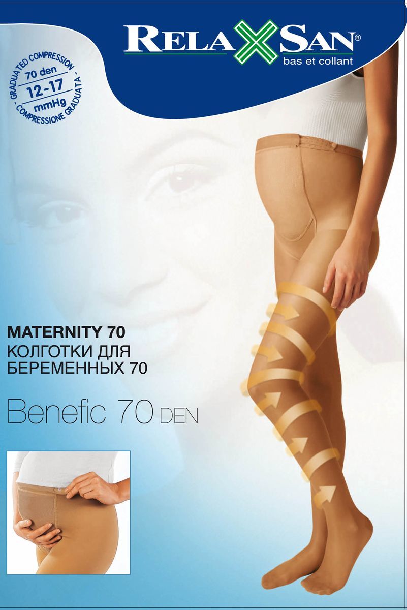 Колготы для беременных Relaxsan Maternity 70 den (арт. 790) – с легкой компрессией 12-17 мм.рт. ст. Компрессионные колготки прозрачные, с эластичной дышащей вставкой, регулируемым поясом, укрепленным мыском и пяткой, уплотненной стопой. Изделия можно использовать на протяжении всей беременности, т. к. они имеют растягивающуюся сетчатую вставку на животе и регулируемый пояс с фиксатором, меняющий объем изделия на талии. Рекомендуются для профилактики варикозного расширения вен, улучшают кровообращение в ногах, снимают усталость и отечность. Колготки производятся из высококачественных материалов методом сетчатого переплетения нитей с двойной оплеткой, что гарантирует длительный срок их использования и гипоаллергенный эффект при контакте с кожными покровами.Состав: 83% Полиамид, 17% эластан.