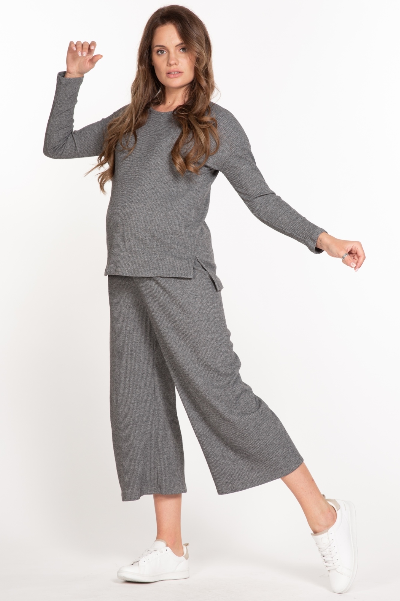 Оригинальный костюм для беременных. Костюм состоит из блузы и брюк. Блуза с округлым вырезом горловины, длинным рукавом, заниженной линией плеча, разрезами по бокам изделия. Брюки-кюлоты с эластичной высокой вставкой-бандажом рассчитаны на весь период беременности. Идеальное сочетание стиля и комфорта!