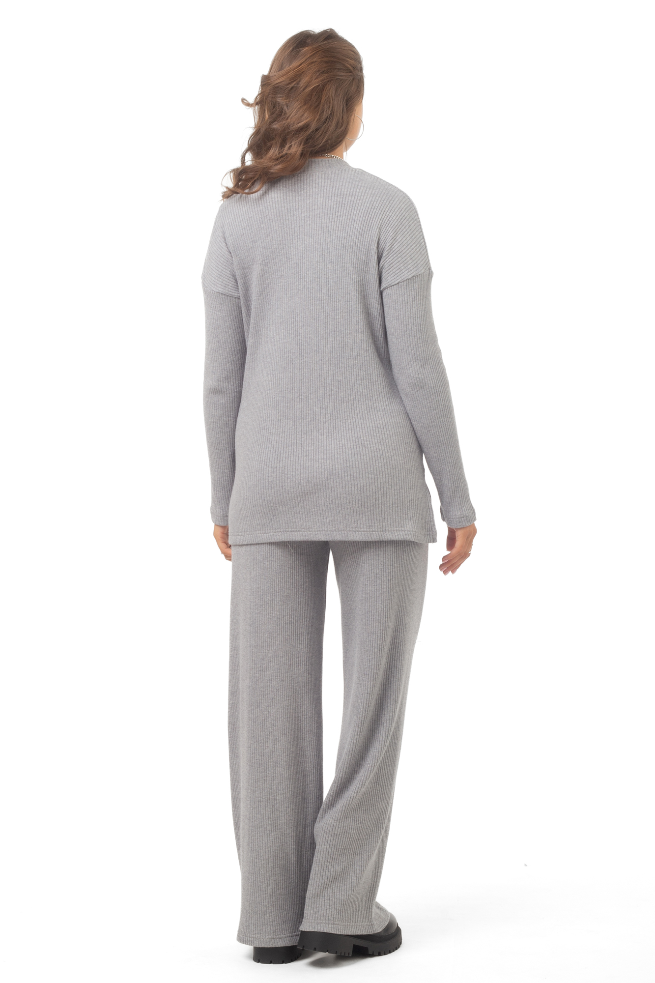 Брючный костюм для беременных сшит из качественного теплого трикотажного материала. Фактурная ткань лапша в рубчик приятна на ощупь, гипоаллергенна и отлично согревает в непогоду. Женский костюм из трикотажа - удачный выбор для повседневного ношения в холодное время года. В комплект для будущих мам включены кофта и штаны. Джемпер со спущенной линией плеча слегка удлинен сзади, по бокам - небольшие разрезы. Штаны широкие, прямого кроя, с высоким эластичным поясом, который выполняет роль бандажа. Модель рассчитана на весь период беременности: обхват регулируется за счет пуговицы на резинке. Брючный костюм для беременных подойдет для прогулок, офиса или ношения дома. В осенний и весенний периоды он пригодится на выписку. Модель предлагается в нескольких однотонных расцветках и полной размерной линейке.