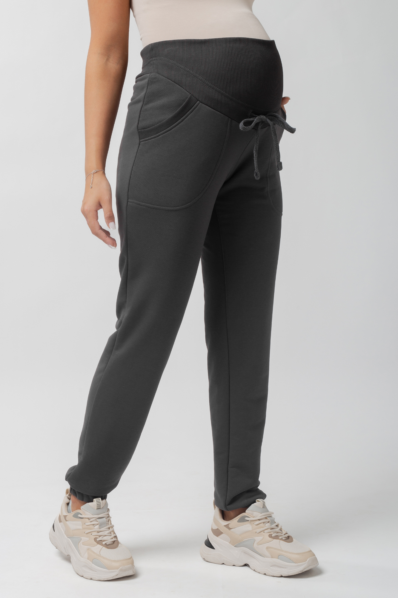 Cтильный костюм для беременных выполнен из трехниточного футера премиум-класса. Мягкий и дышащий материал поддерживает нормальную терморегуляцию и впитывает влагу. Комплект состоит из двух вещей: брюк и свитшота. Брюки джоггеры оснащены высокой эластичной вставкой для живота с возможностью регулировки объема (за счет резинки на пуговице), украшены функциональными боковыми карманами. Свитшот свободного кроя с воротником. Для комфортного кормления предусмотрена вертикальная молния. Костюм подходит для ношения на любом месяце беременности и после родов. Модель из хлопкового трикотажа - идеальный вариант повседневного образа для будущей мамы на весну и прохладное лето. Универсальный и нарядный комплект подойдет для прогулок, выписки из роддома, занятий спортом, путешествий и просто на каждый день.