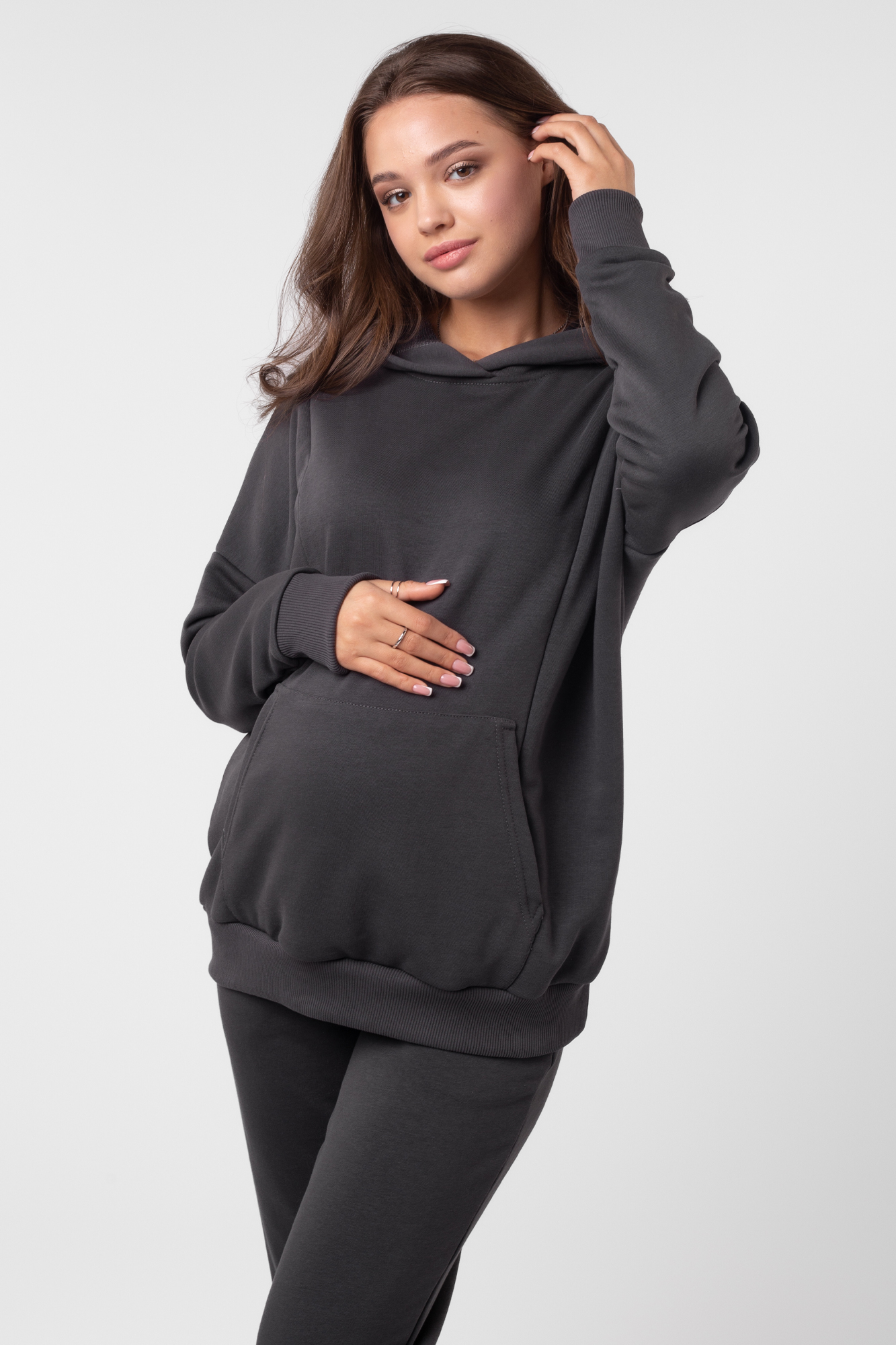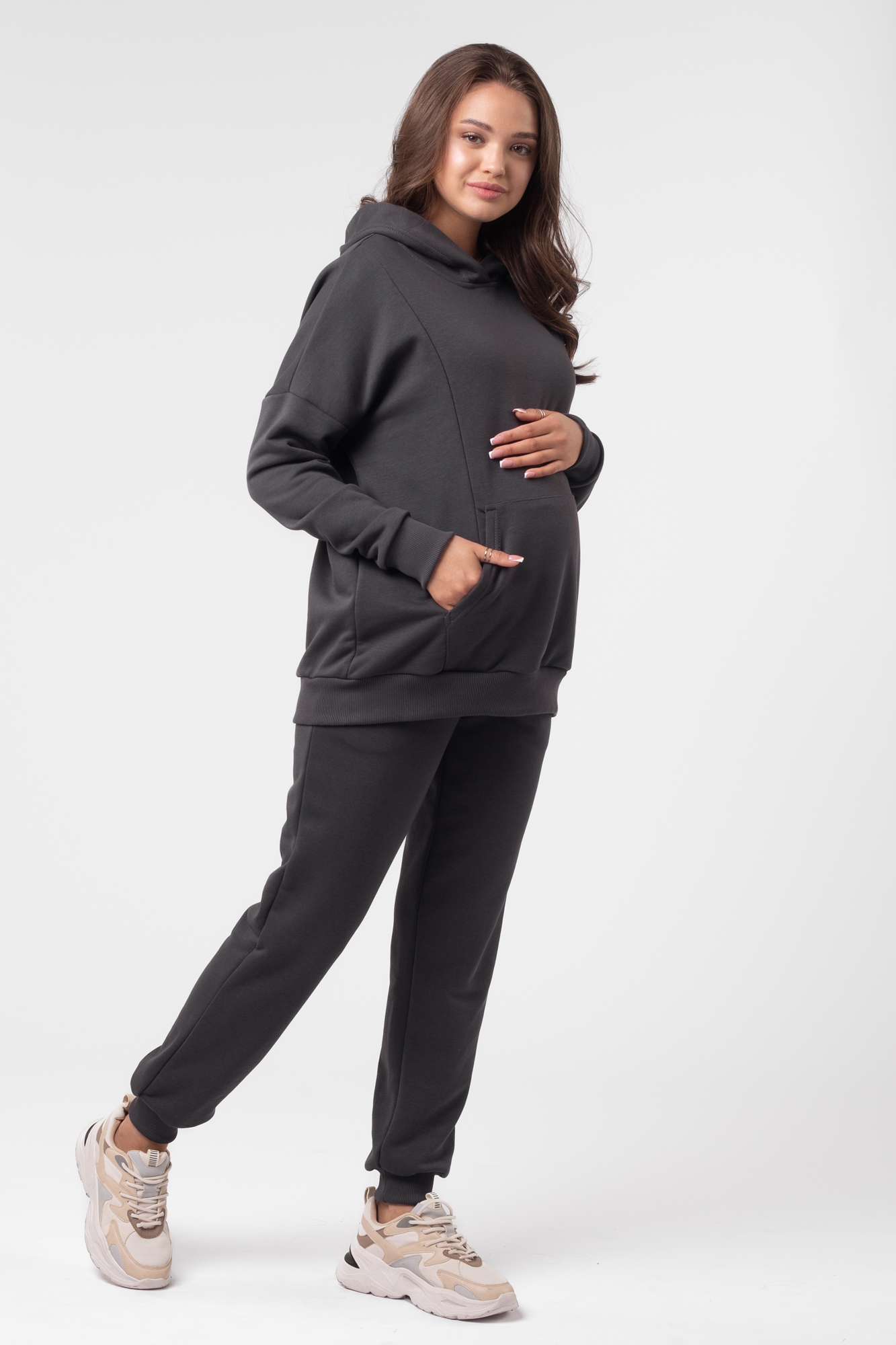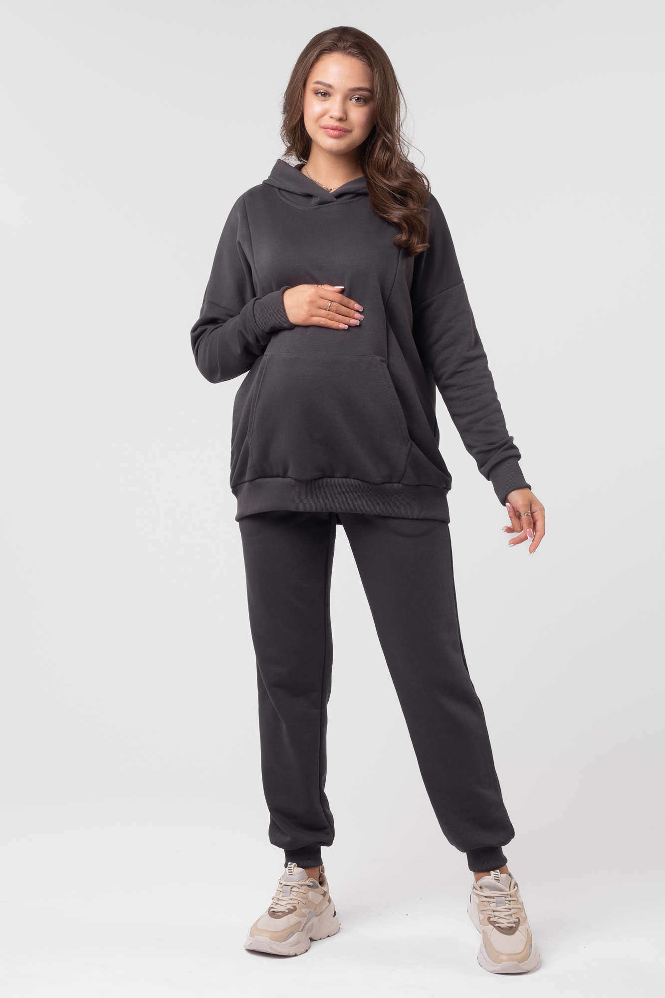 Спортивный костюм для беременных и кормящих 13043 темно-серый
