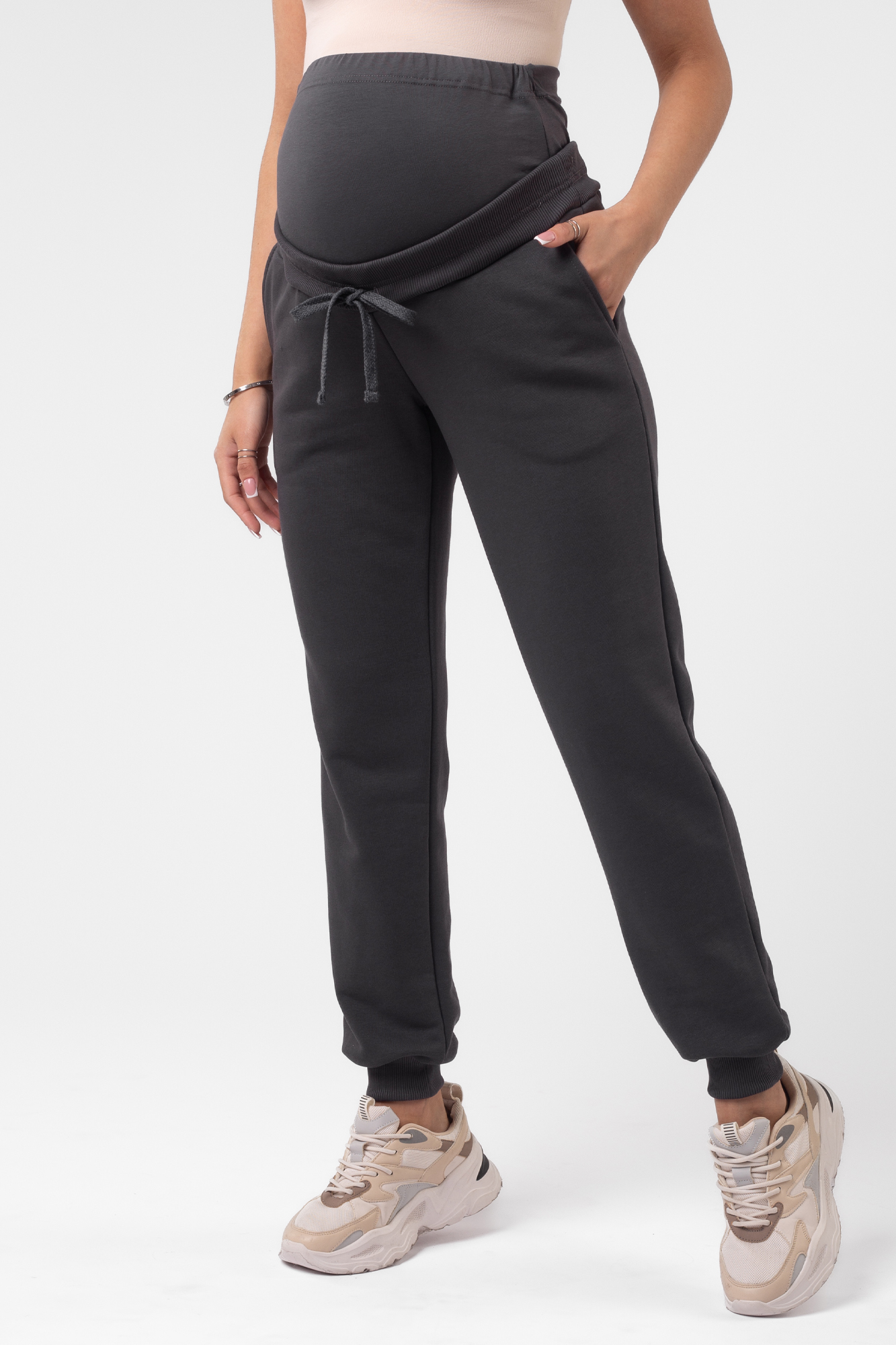 Cпортивный костюм для беременных и кормящих выполнен из высококачественного трехниточного футера. Стильное худи согреет в прохладную погоду. Особый крой позволяет носить изделие на всем протяжении беременности и после нее. Благодаря диагональным потайным молниям Вы сможете покормить малыша с комфортом в любой ситуации. Брюки с эластичным поясом рассчитаны на любой срок беременности, не сдавливают и поддерживают растущий животик. Объем регулируется с помощью перфорированной резинки, перестегивающейся на пуговицу, продетой в пояс брюк.