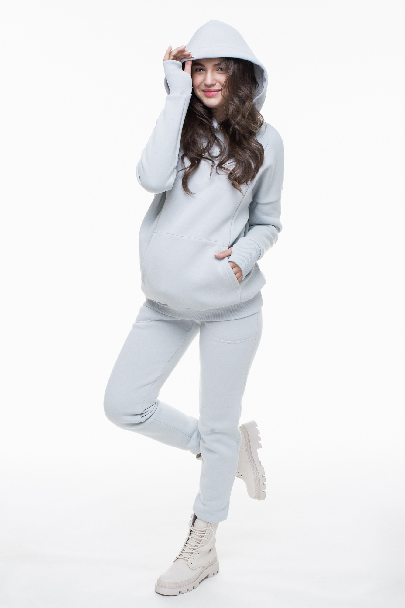 Утепленный спортивный костюм для беременных и кормящих выполнен из высококачественного трехниточного футера с начесом. Стильное теплое худи для будущих мам согреет в прохладную погоду. Особый крой позволяет носить изделие на всем протяжении беременности и после нее. Благодаря диагональным потайным молниям Вы сможете покормить малыша с комфортом в любой ситуации. Брюки с эластичным поясом рассчитаны на любой срок беременности, не сдавливают и поддерживают растущий животик. Объем регулируется с помощью перфорированной резинки, перестегивающейся на пуговицу, продетой в пояс брюк. Костюм подходит для спорта, для прогулок и просто в качестве домашней одежды.