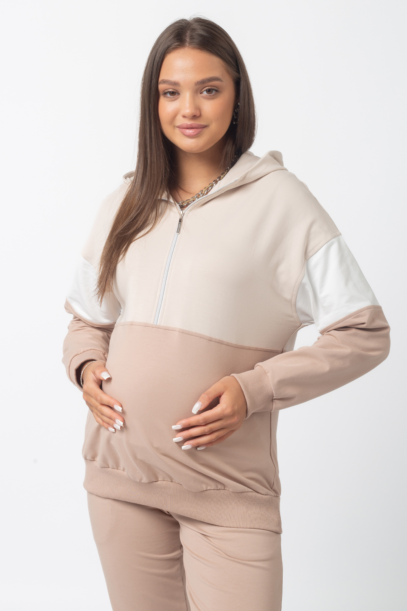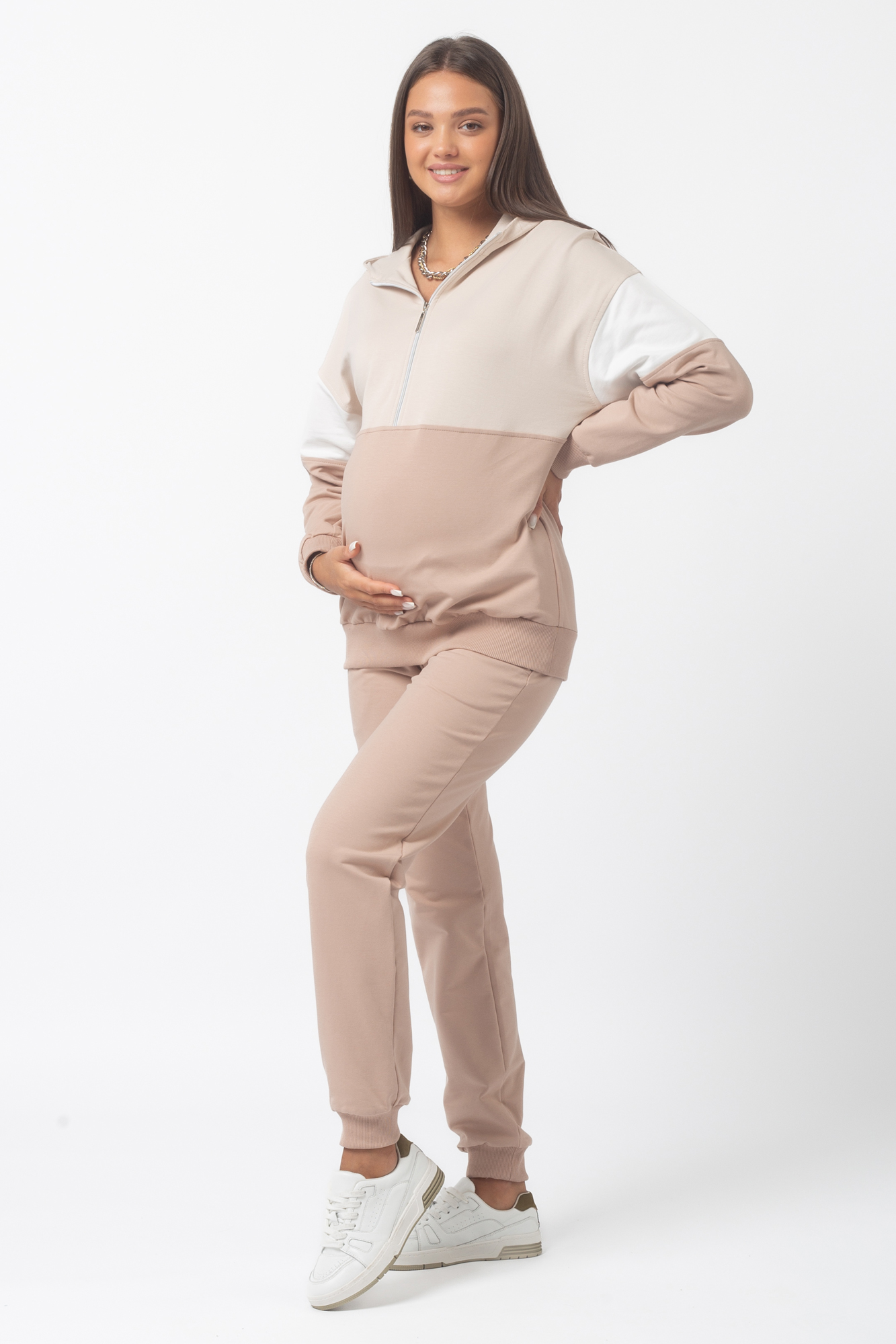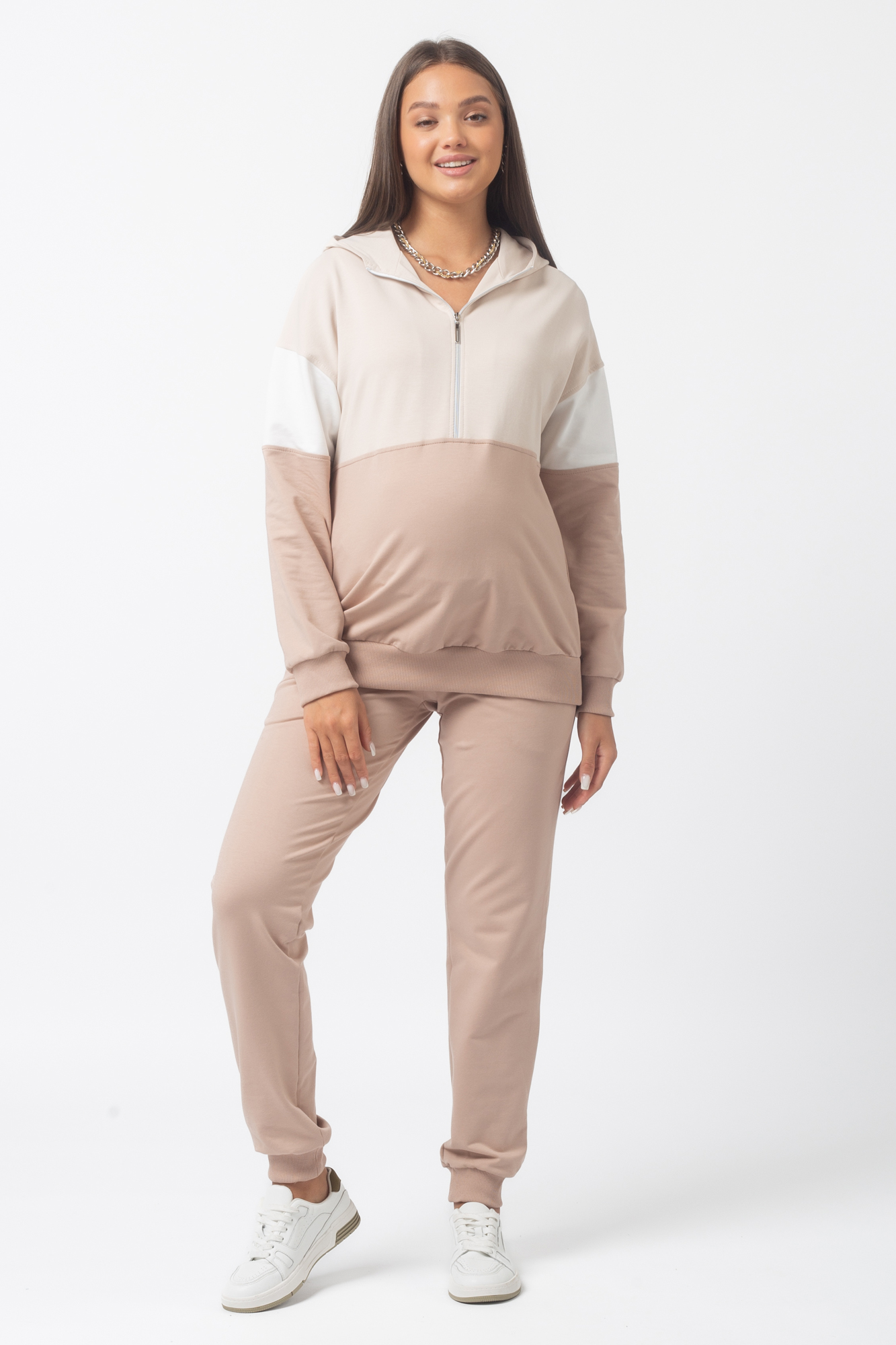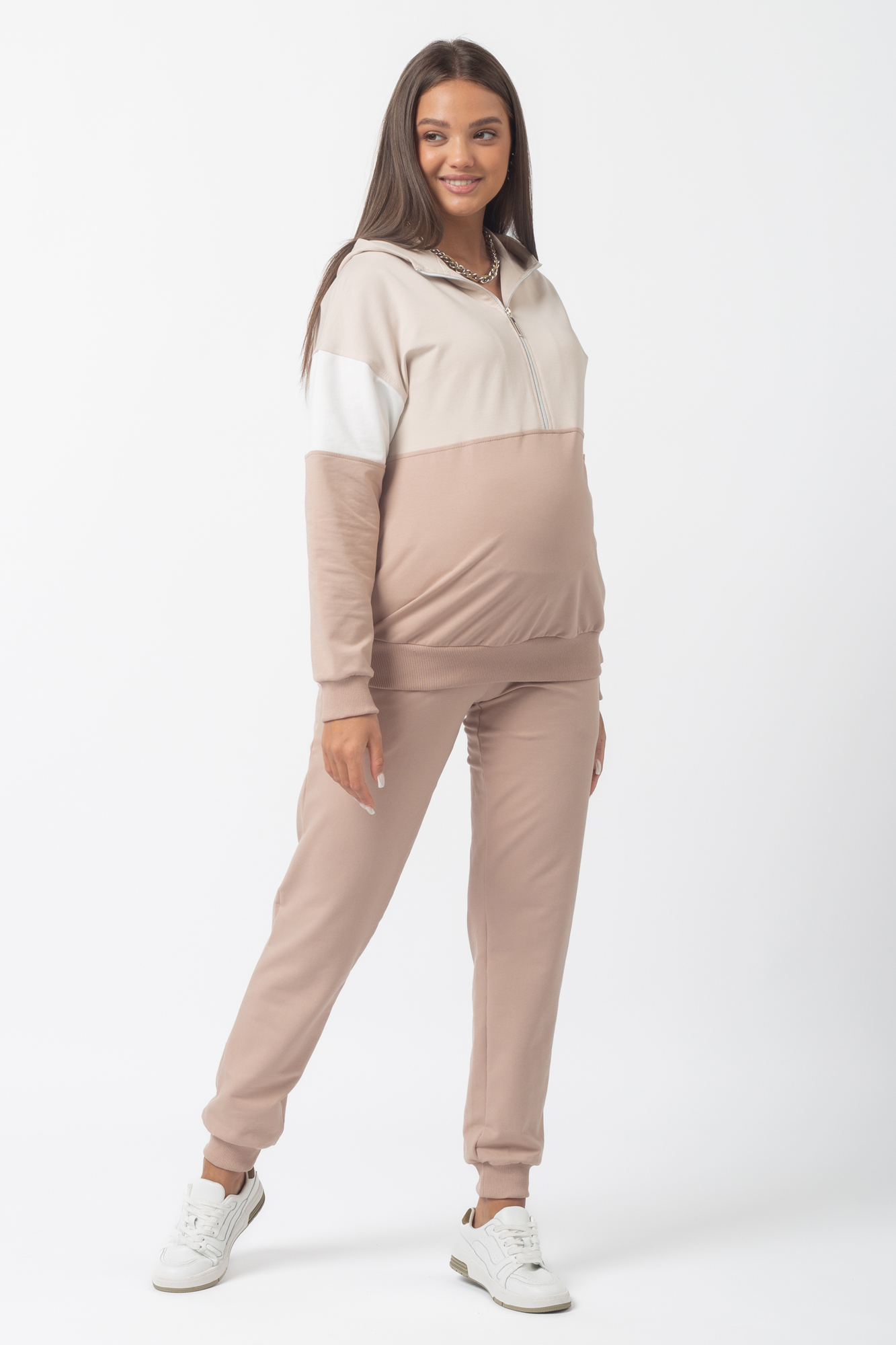 Спортивный костюм для беременных и кормящих 13596 какао беж тофу
