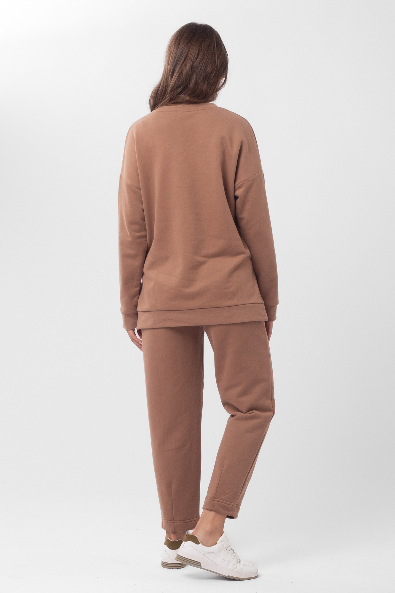 Брючный костюм для беременных и кормящих выполнен из мягкого высококачественного футера. Комплект состоит из свитшота и брюк. Толстовка прямая, с длинным рукавом и декоративными разрезами сбоку. По бокам вшиты тайные вертикальные молнии, с помощью которых удастся с комфортом покормить ребенка вне дома. Брюки зауженного кроя имеют мягкий бандаж, который деликатно поддерживает растущий животик. Скрытая двойная регулировка объема пояса позволяет носить брюки на протяжении всей беременности и после родов. Костюм для беременных прекрасно подойдёт для прогулок и встреч.