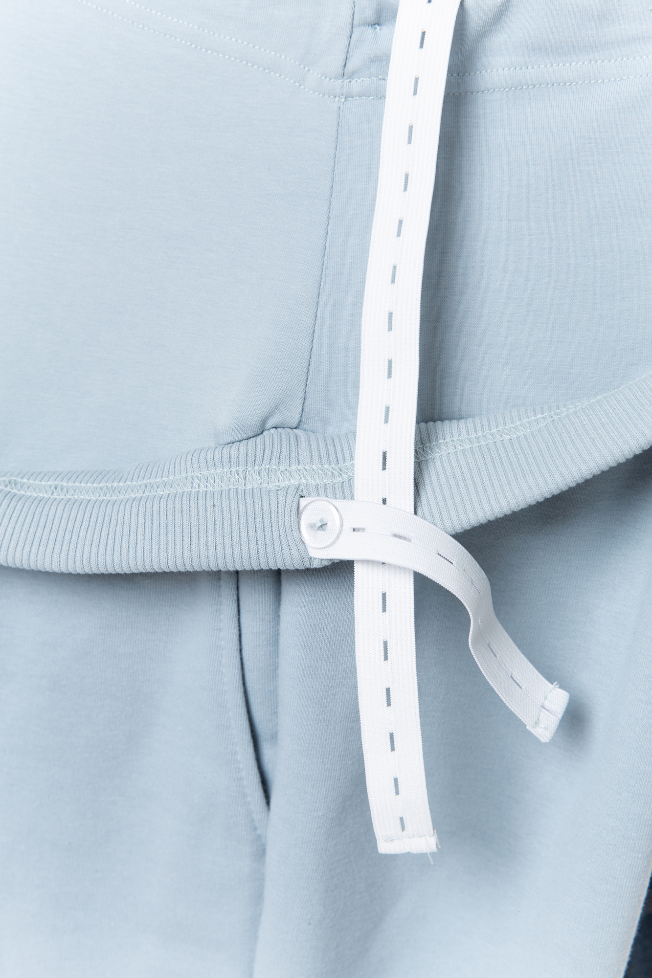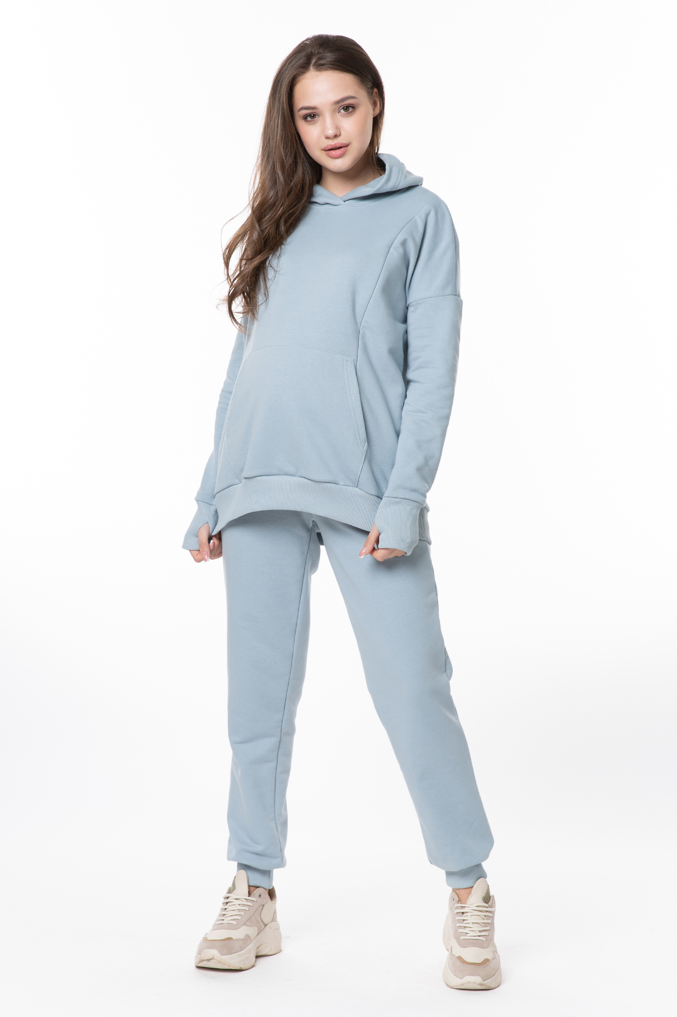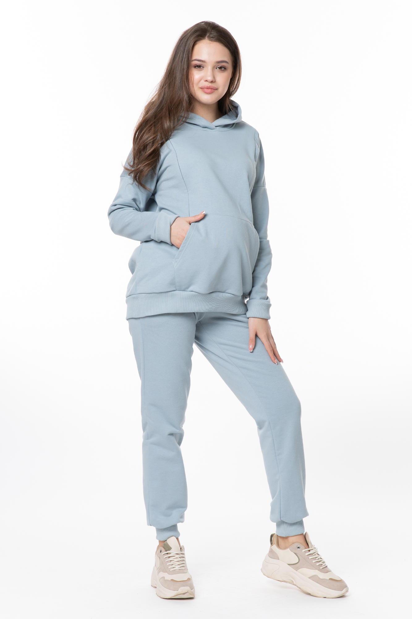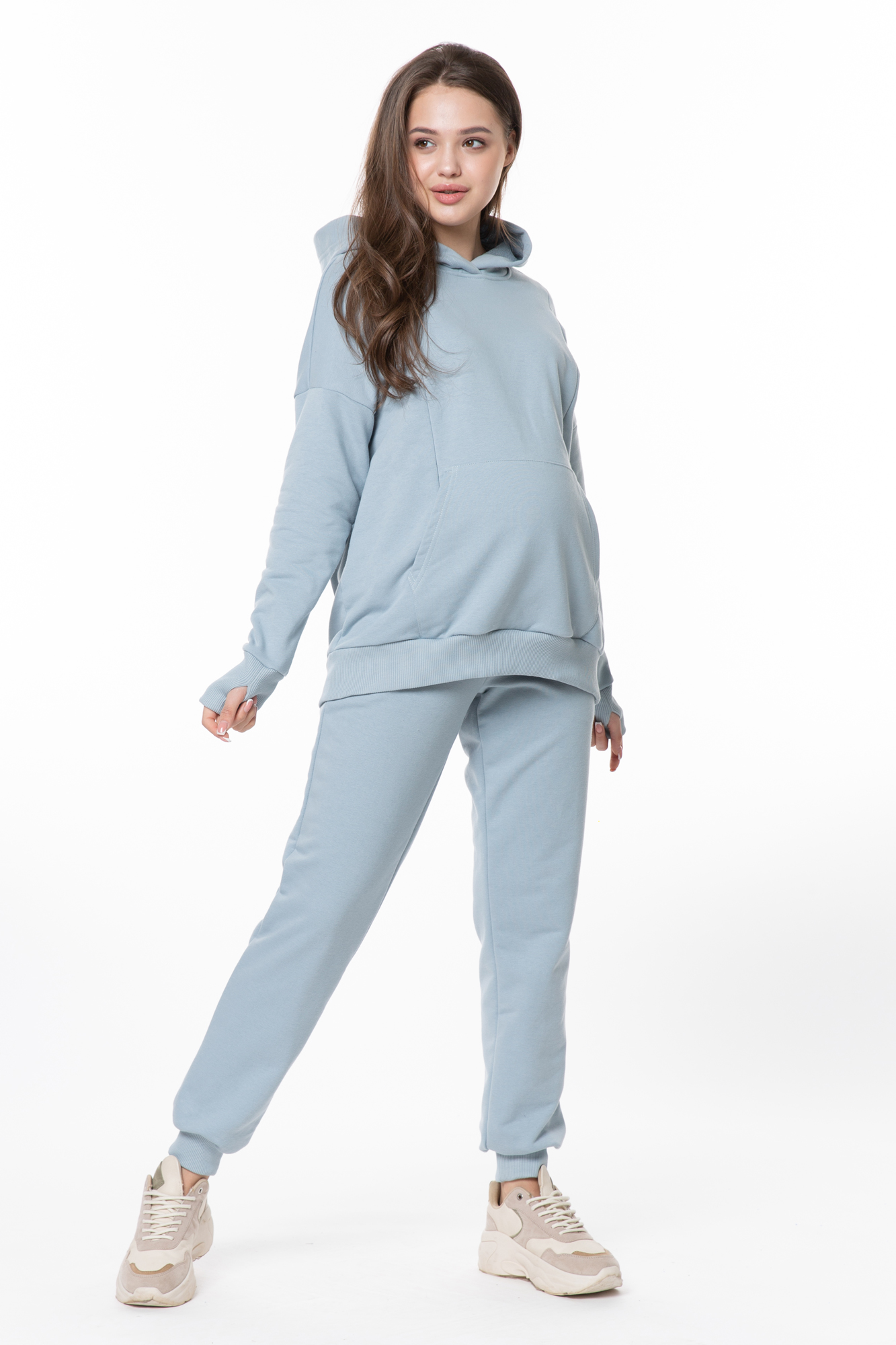 Cпортивный костюм для беременных и кормящих выполнен из высококачественного трехниточного футера. Стильное худи согреет в прохладную погоду. Особый крой позволяет носить изделие на всем протяжении беременности и после нее. Благодаря диагональным потайным молниям Вы сможете покормить малыша с комфортом в любой ситуации. Брюки с эластичным поясом рассчитаны на любой срок беременности, не сдавливают и поддерживают растущий животик. Объем регулируется с помощью перфорированной резинки, перестегивающейся на пуговицу, продетой в пояс брюк, а так же в верхнюю часть трикотажной вставки.
