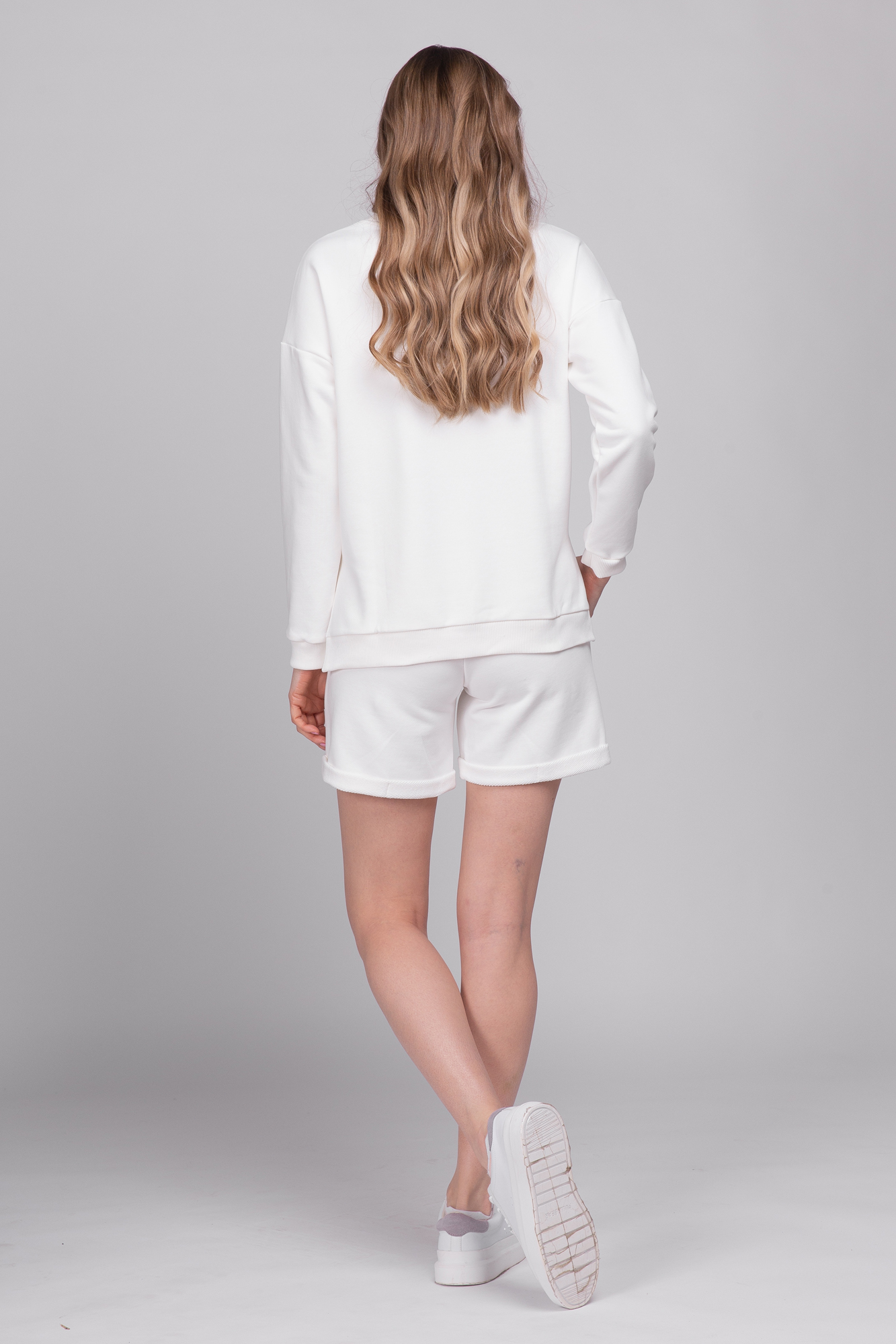 Спортивный костюм из высококачественного трехниточного футера (петля) для беременных и кормящих. Свитшот имеет «секрет» кормления – вертикальные потайные молнии – позволит покормить малыша с повышенным комфортом в любой ситуации. Шорты с высокой трикотажной вставкой предназначены для ношения в период беременности и после родов. Объем регулируется при помощи перфорированной резинки, перестегивающейся на пуговицу, продетой в пояс изделия. Костюм подойдет для прогулок, занятий спортом и в качестве домашней одежды.
