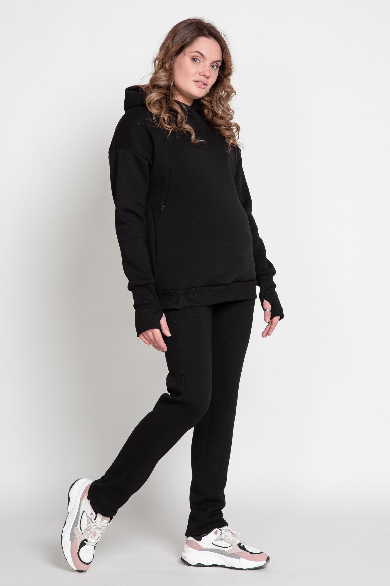 Утепленный спортивный костюм для беременных и кормящих 11885 черный/без вышивки