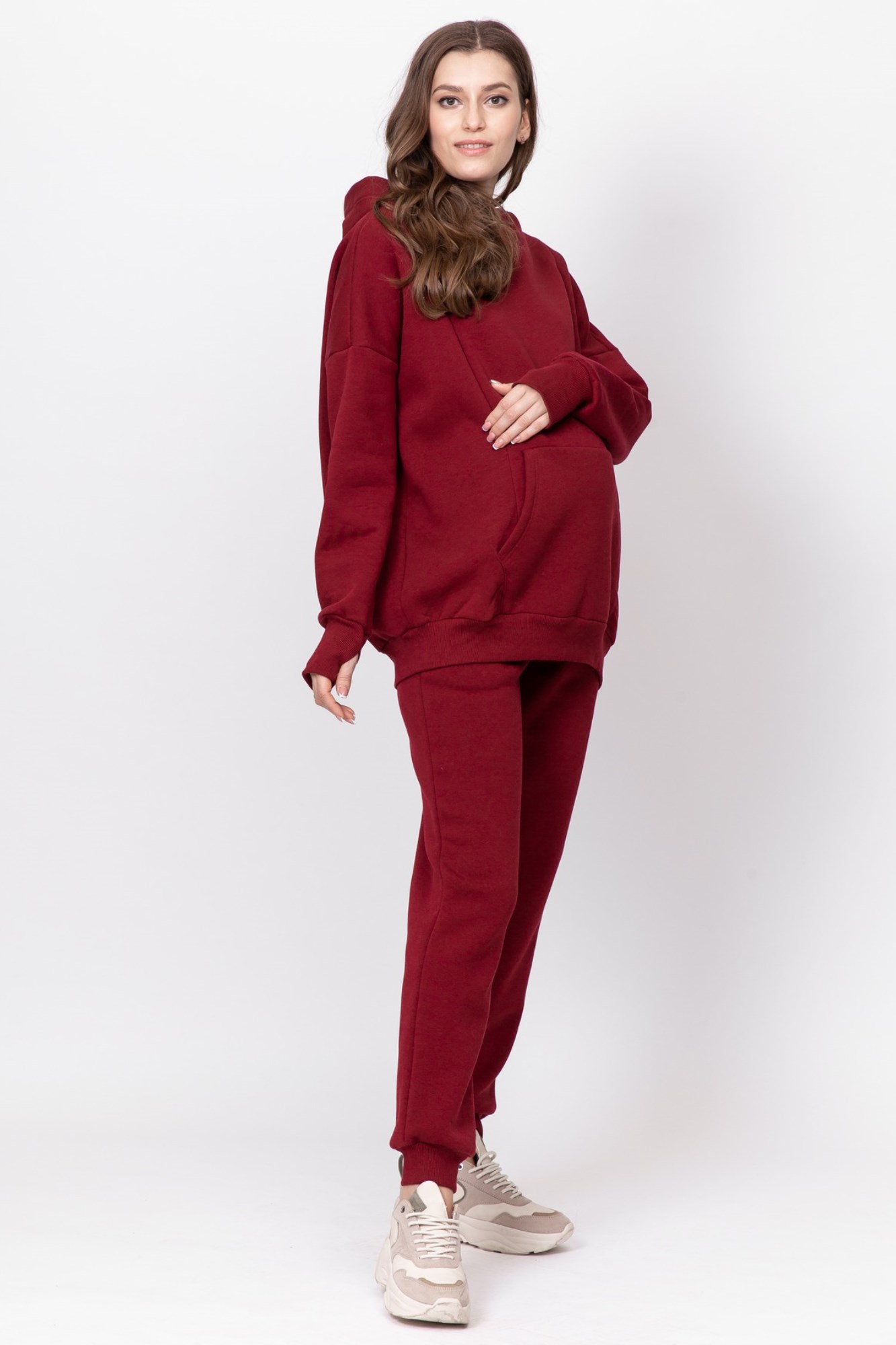 Утепленный спортивный костюм для беременных и кормящих выполнен из высококачественного трехниточного футера с начесом. Стильное худи согреет в прохладную погоду. Особый крой позволяет носить изделие на всем протяжении беременности и после нее. Благодаря диагональным потайным молниям Вы сможете покормить малыша с комфортом в любой ситуации. Брюки с эластичным поясом рассчитаны на любой срок беременности, не сдавливают и поддерживают растущий животик. Объем регулируется с помощью перфорированной резинки, перестегивающейся на пуговицу, продетой в пояс брюк.