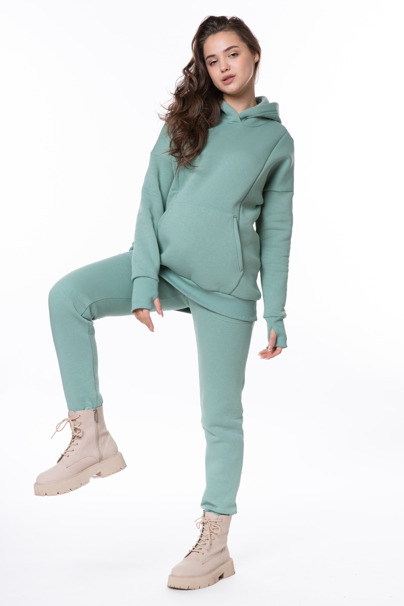 Утепленный спортивный костюм для беременных и кормящих 13125 зеленый гранит