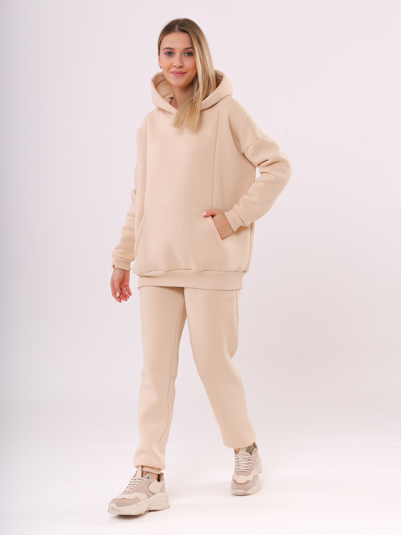 Утепленный спортивный костюм для беременных и кормящих выполнен из высококачественного трехниточного футера с начесом (пенье). Стильное теплое худи с капюшоном и карманом кенгуру для будущих мам согреет в прохладную погоду. Особый крой позволяет носить изделие на всем протяжении беременности и после нее. Благодаря диагональным потайным молниям для кормления Вы сможете покормить малыша с комфортом в любой ситуации. Брюки с высокой посадкой и эластичным поясом рассчитаны на любой срок беременности, не сдавливают и поддерживают растущий животик. Объем регулируется с помощью перфорированной резинки, перестегивающейся на пуговицу, продетой в пояс брюк. Костюм подходит для спорта, для прогулок и просто в качестве домашней одежды. Идеальный вариант для ношения в сезон осень-зима.