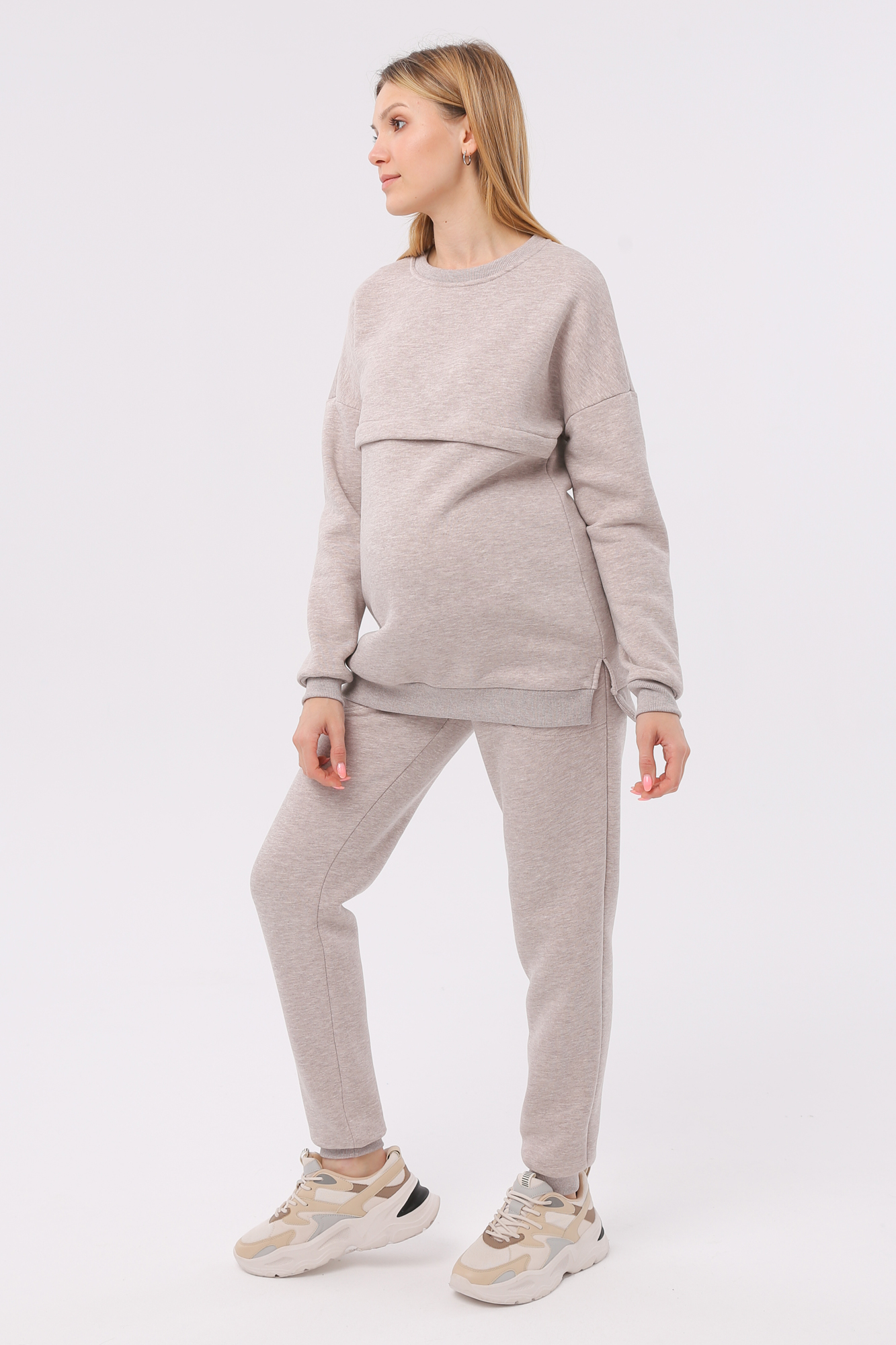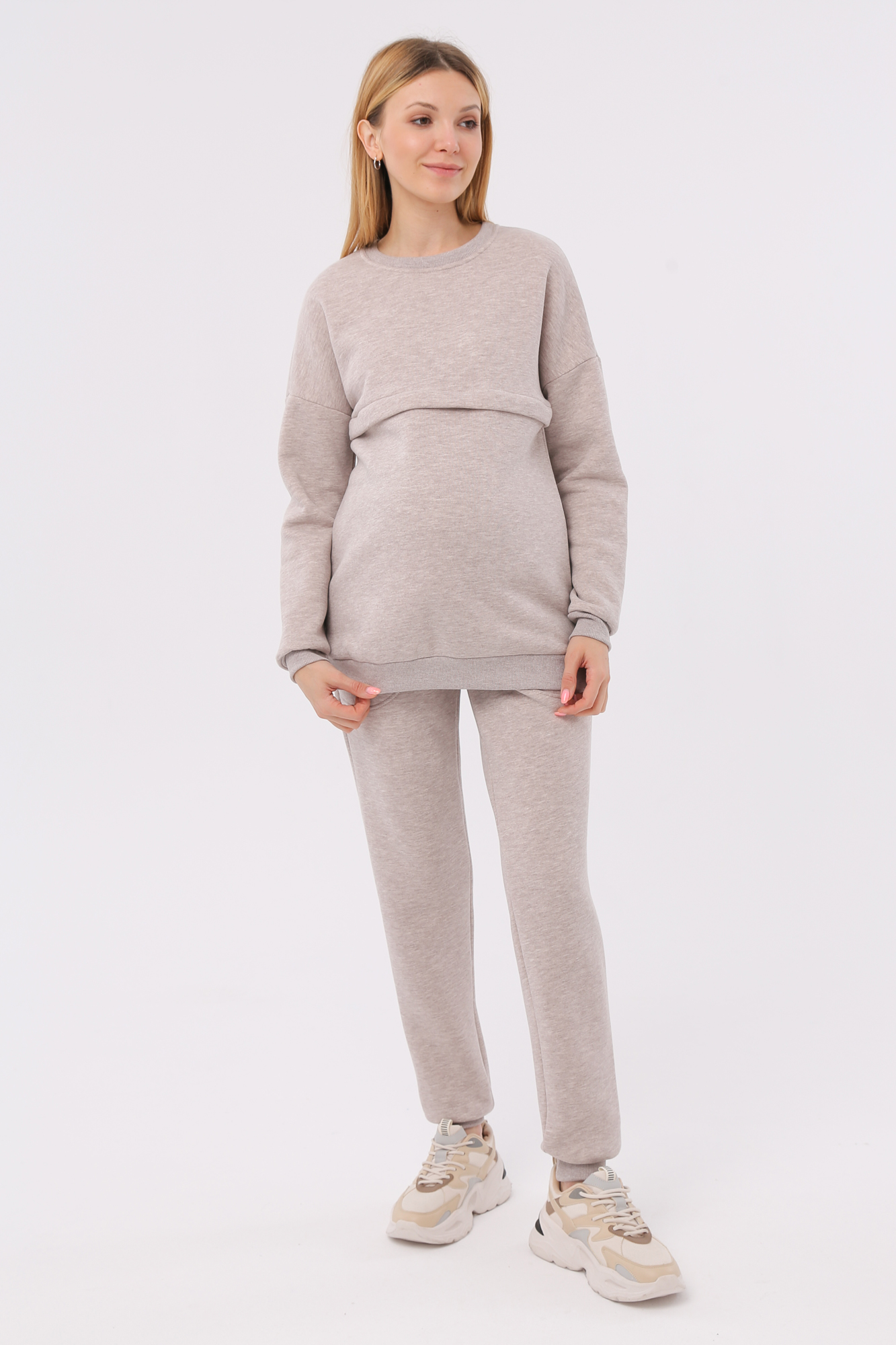 Утепленный спортивный костюм для беременных и кормящих 16041 светлый какао меланж