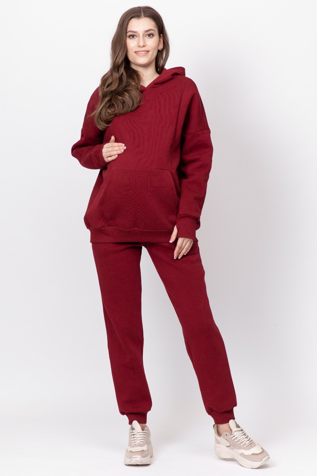 Утепленный спортивный костюм для беременных и кормящих выполнен из высококачественного трехниточного футера с начесом. Стильное худи согреет в прохладную погоду. Особый крой позволяет носить изделие на всем протяжении беременности и после нее. Благодаря диагональным потайным молниям Вы сможете покормить малыша с комфортом в любой ситуации. Брюки с эластичным поясом рассчитаны на любой срок беременности, не сдавливают и поддерживают растущий животик. Объем регулируется с помощью перфорированной резинки, перестегивающейся на пуговицу, продетой в пояс брюк.