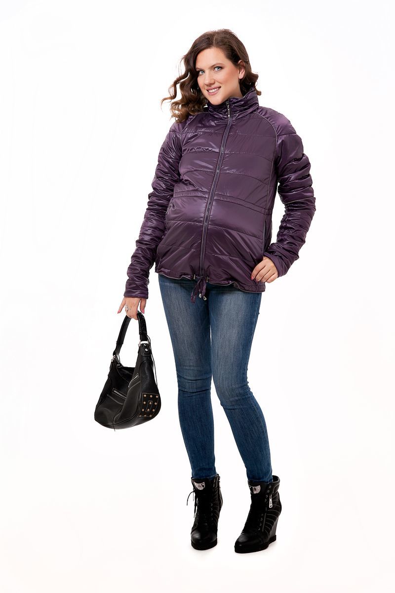 Куртка для будущих мам свободного силуэта. Центральная застежка на молнии. Нагрудная вытачка переведена вниз, что дает дополнительный объем на животик. По низу изделия затяжник. Пройма рукава выполнена регланом с отстёгивающимися рукавами. Капюшон спрятан в воротник-стойку, округлый вырез. Карманы в рельефах швов на молнии.