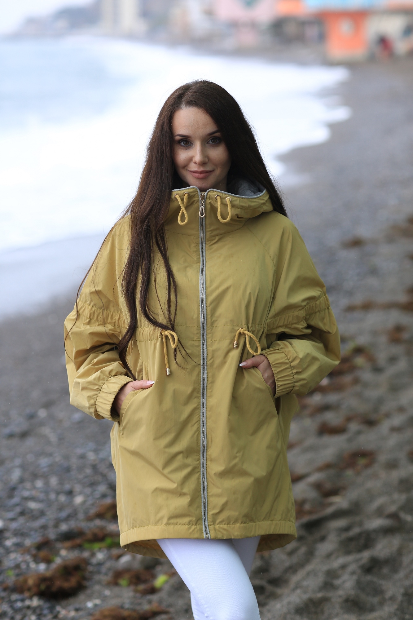 Демисезонная куртка зауженного силуэта, воротник-капюшон (кобра), рукав реглан с заниженной проймой.