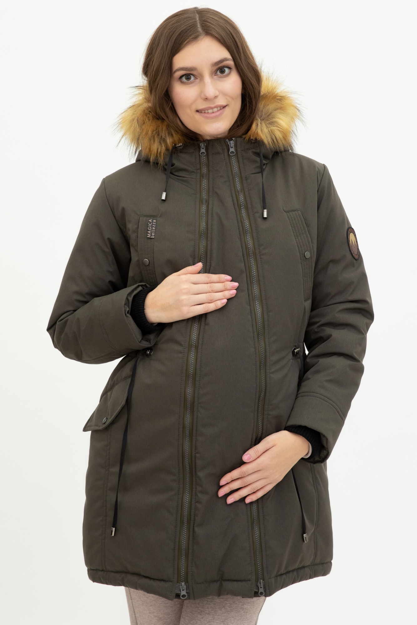 Зимняя куртка-парка для беременных 2 в 1. Модный силуэт и вместительная вставка позволяют носить эту куртку не только до последних сроков беременности, но и после родов. Силуэт можно сделать приталенным с помощью кулисок. Центральная застежка и карманы на молниях. Удобный капюшон с искусственным мехом защитит от любой ненастной погоды.