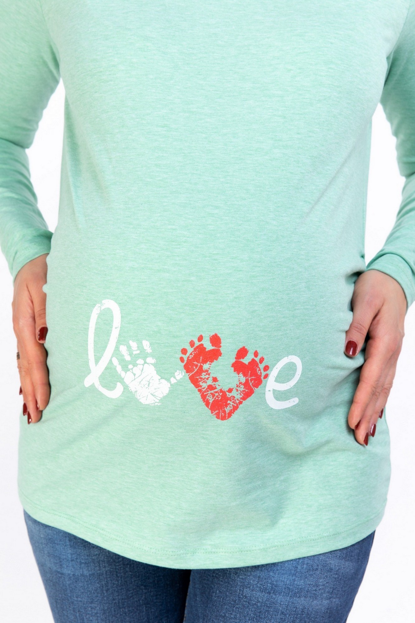 Трикотажный лонгслив с забавным принтом для беременных. Модель разработана так, что вы будете чувствовать себя комфортно на любом сроке беременности и после неё. Незаменимая вещь на каждый день.