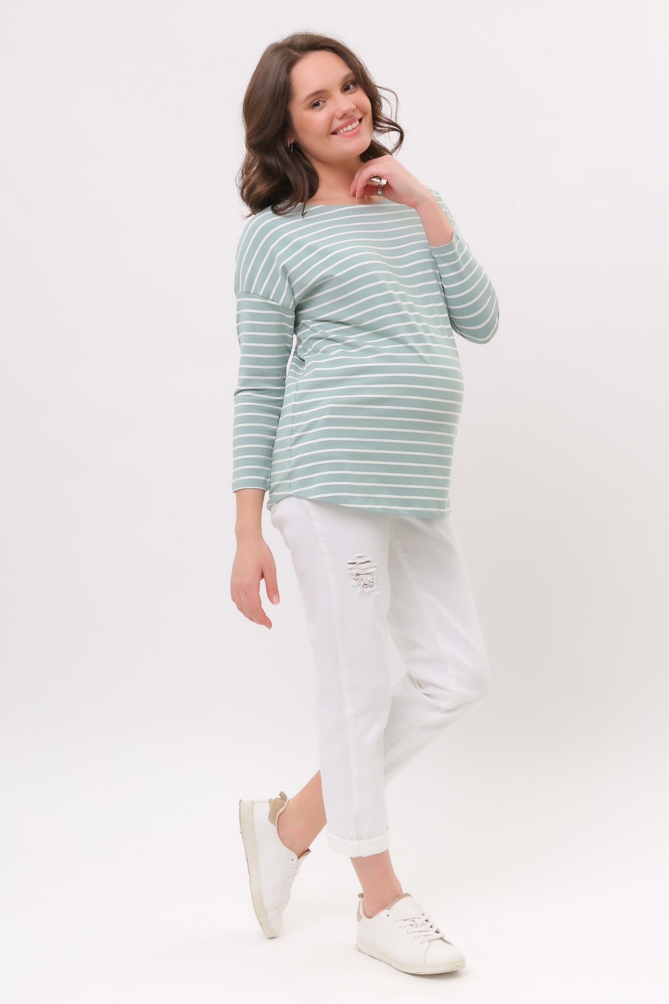 Стильный лонгслив свободного кроя для беременных. Натуральный материал подарит приятные тактильные ощущения и обеспечит комфорт будущей маме и малышу. Детали: округлый вырез горловины, удлиненная линия плеча, рукав 3/4. Великолепная посадка на всем протяжении беременности и после родов.