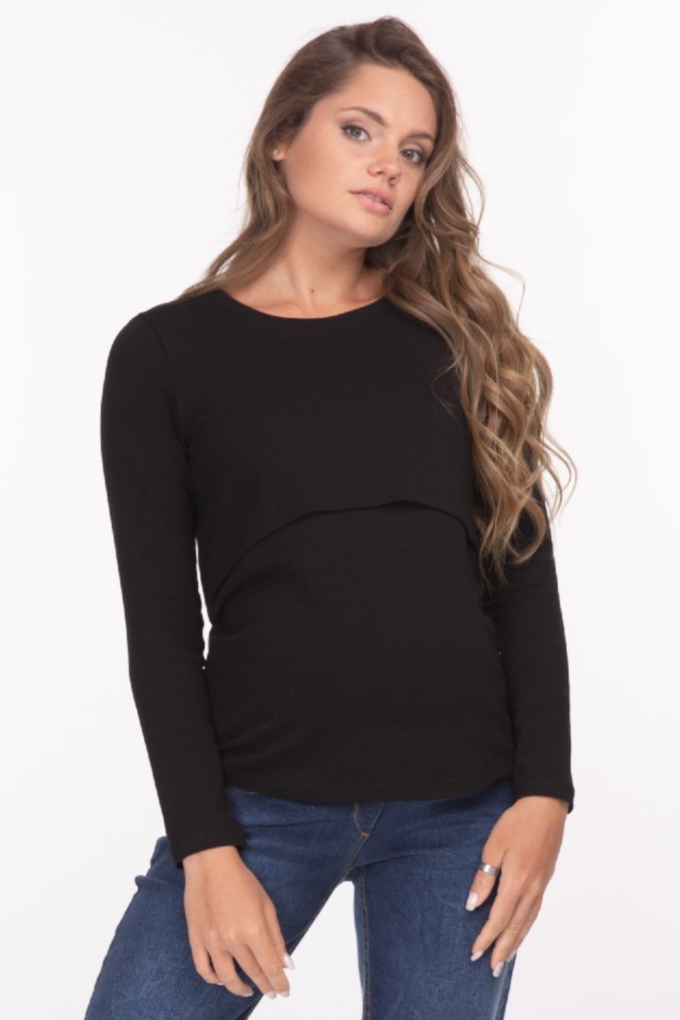Лонгслив для беременных и кормящих. Выполнен из натурального полотна, округлый вырез горловины, длинный рукав. Специальная конструкция для кормления предоставляет возможность покормить малыша в любой ситуации с повышенным комфортом.