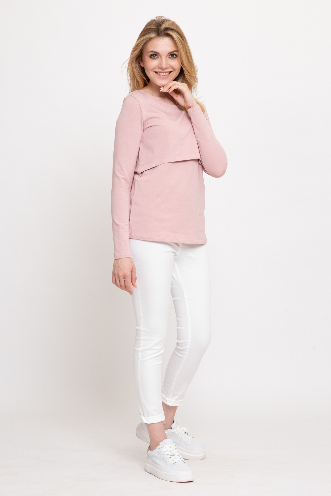 Лонгслив для беременных и кормящих. Выполнен из натурального полотна, округлый вырез горловины, длинный рукав. Специальная конструкция для кормления предоставляет возможность покормить малыша в любой ситуации с повышенным комфортом.