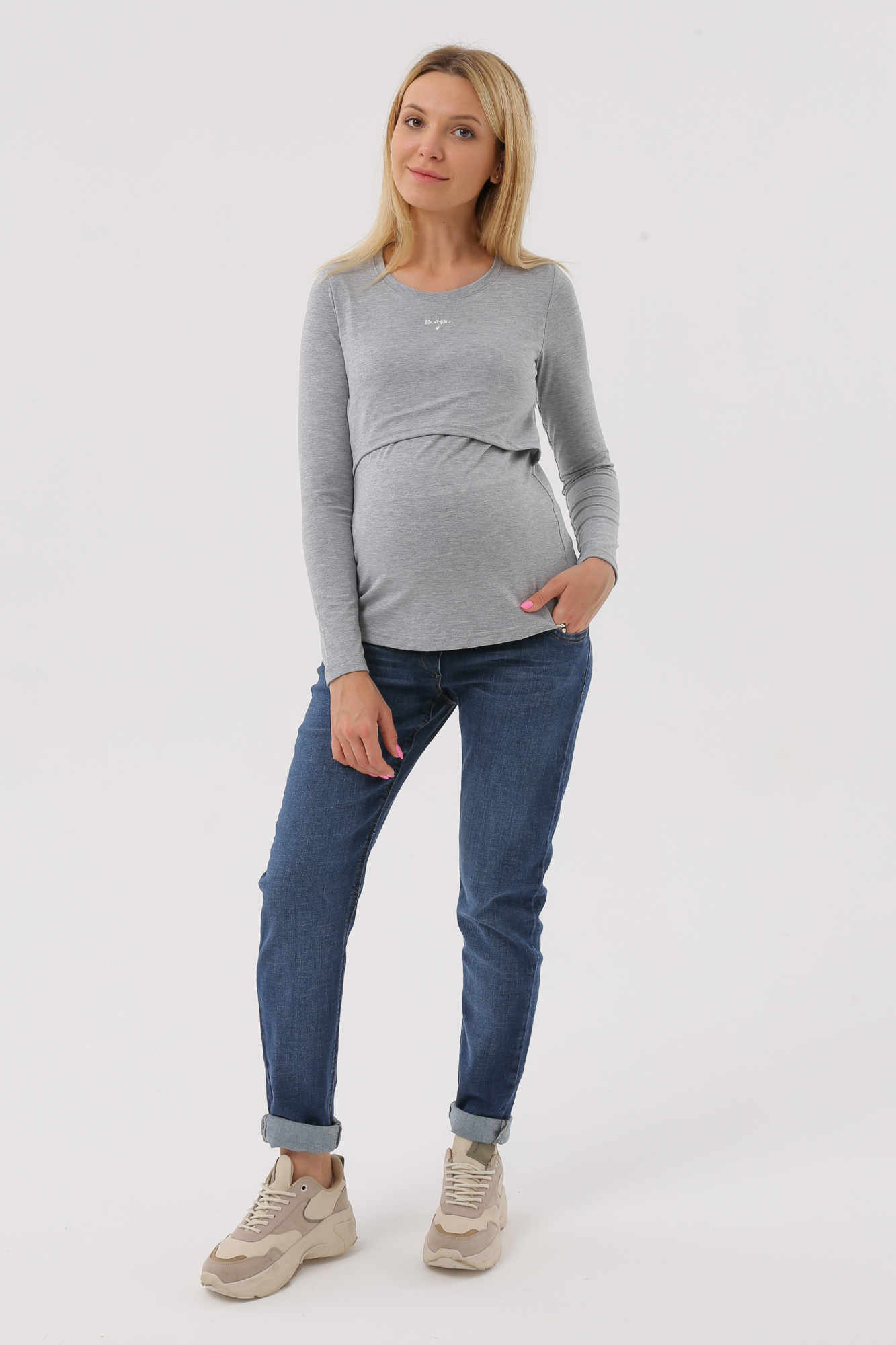 Лонгслив для беременных и кормящих 11089 серый с принтом