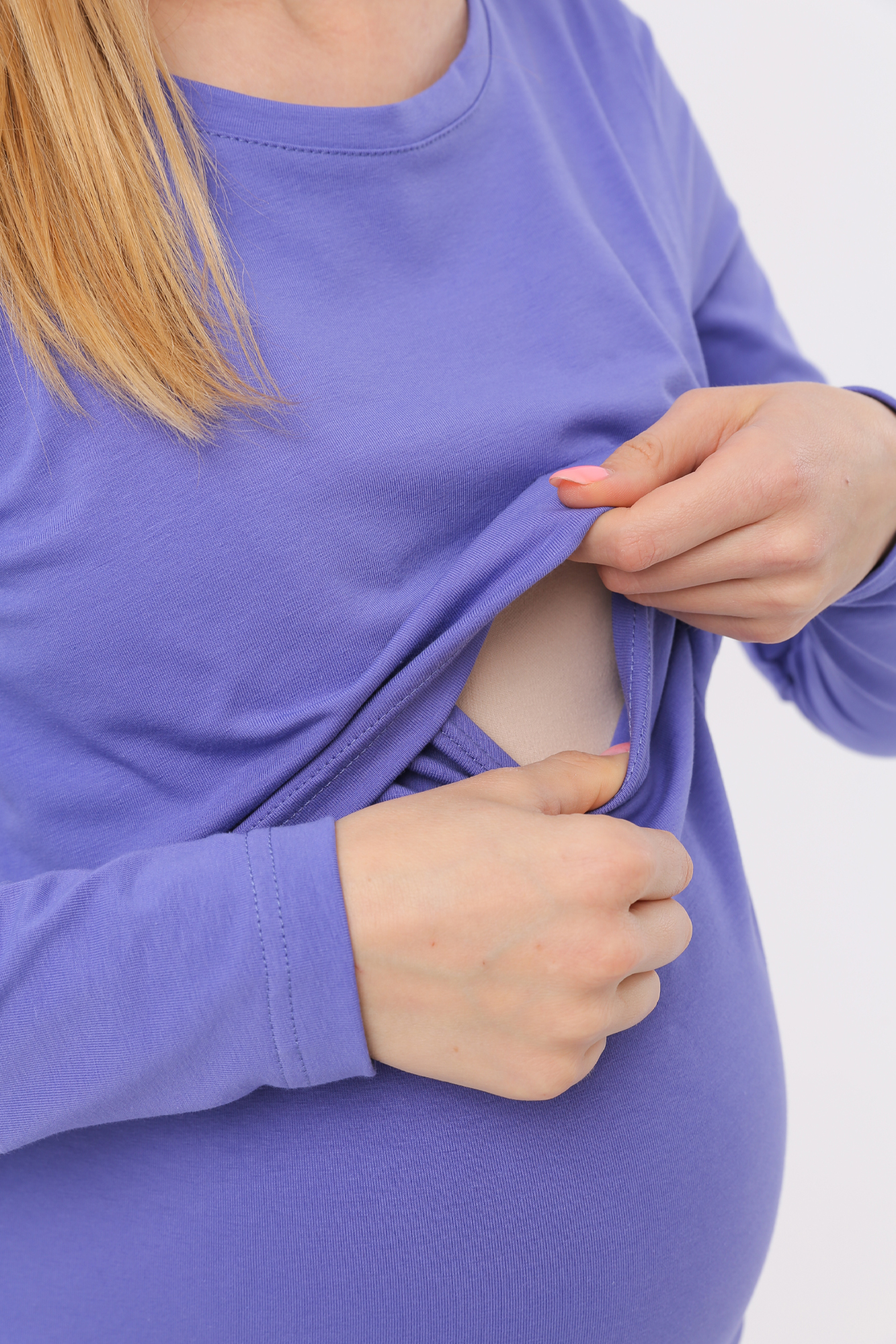 Лонгслив для беременных и кормящих. Выполнен из натурального полотна, округлый вырез горловины, длинный рукав. Специальная конструкция для кормления предоставляет возможность покормить малыша в любой ситуации с повышенным комфортом.