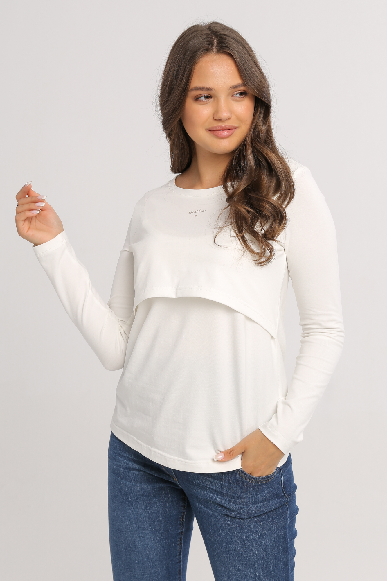 Лонгслив для беременных и кормящих. Выполнен из натурального полотна, округлый вырез горловины, длинный рукав. Специальная конструкция для кормления предоставляет возможность покормить малыша в любой ситуации с повышенным комфортом.