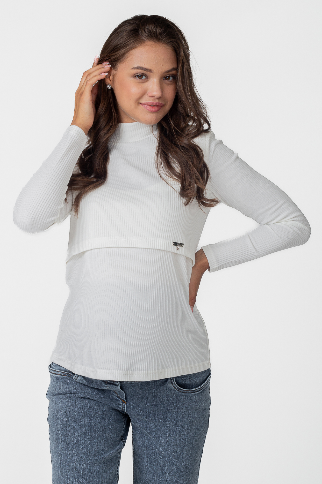 Лонгслив в рубчик для беременных и кормящих. Детали: воротник-стойка, длинный рукав. Специальная конструкция для кормления предоставляет возможность покормить малыша в любой ситуации с повышенным комфортом.