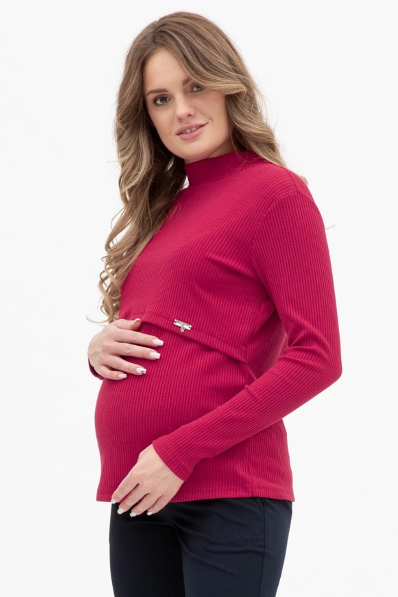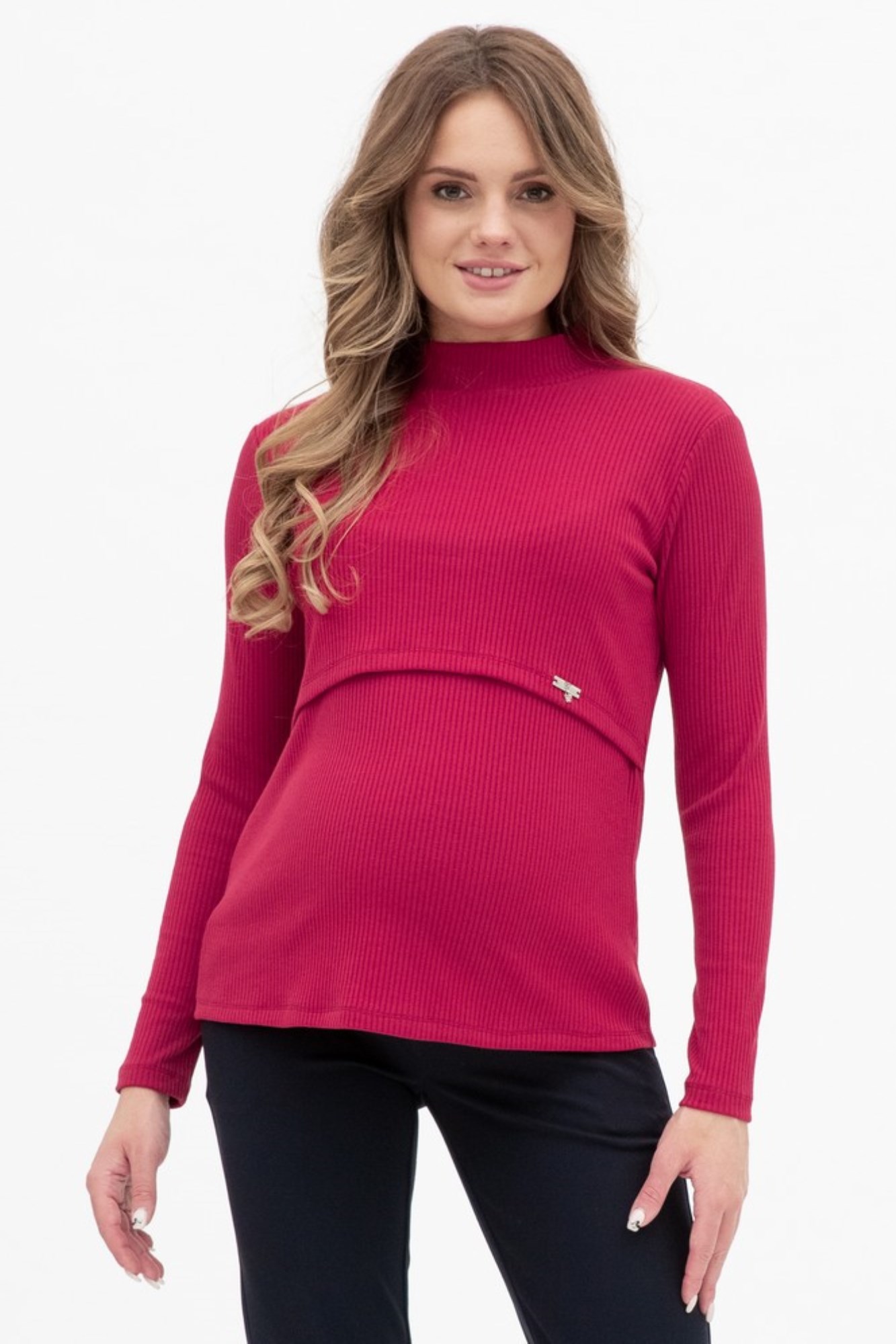 Лонгслив в рубчик для беременных и кормящих. Детали: воротник-стойка, длинный рукав. Специальная конструкция для кормления предоставляет возможность покормить малыша в любой ситуации с повышенным комфортом.