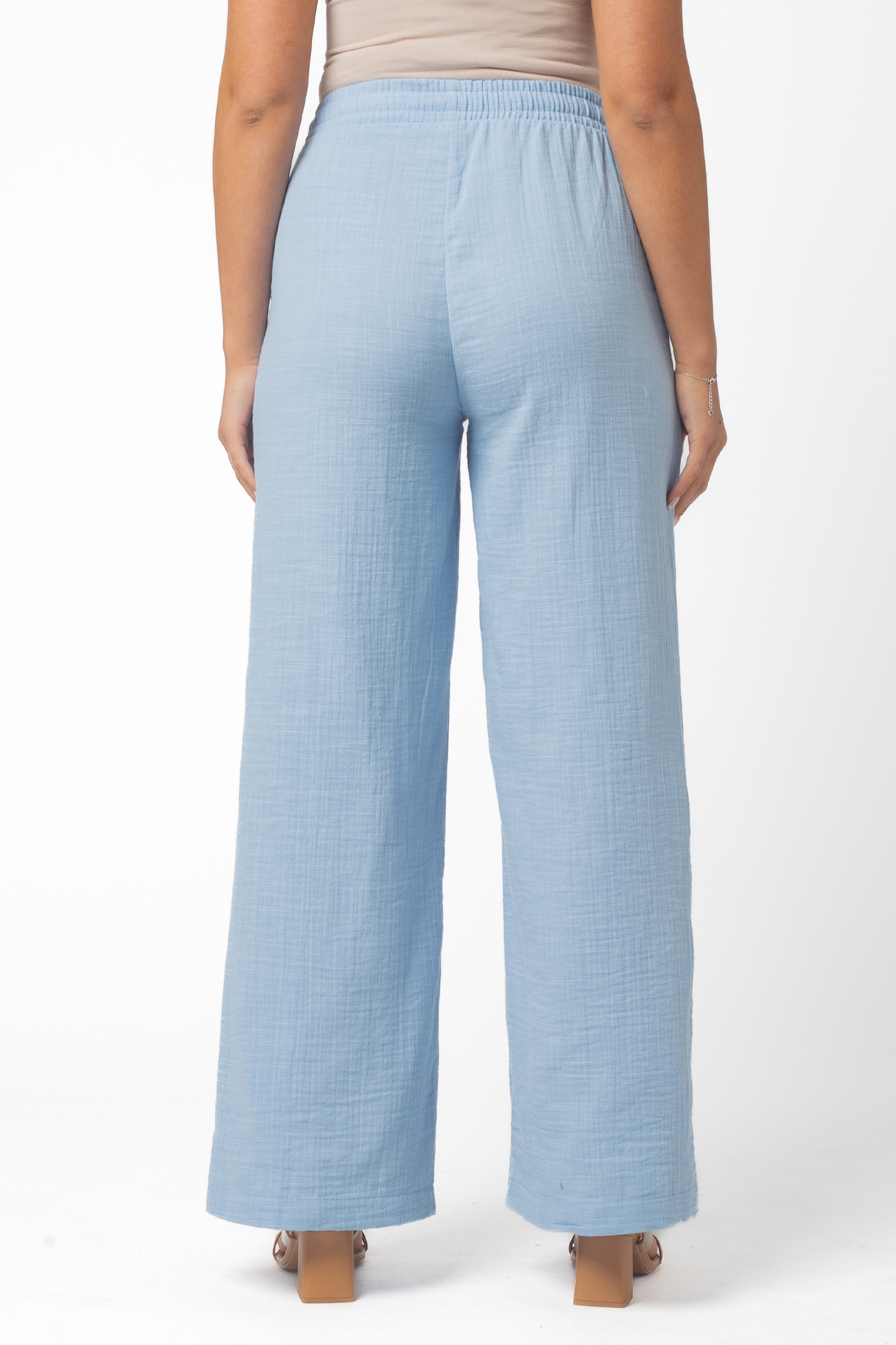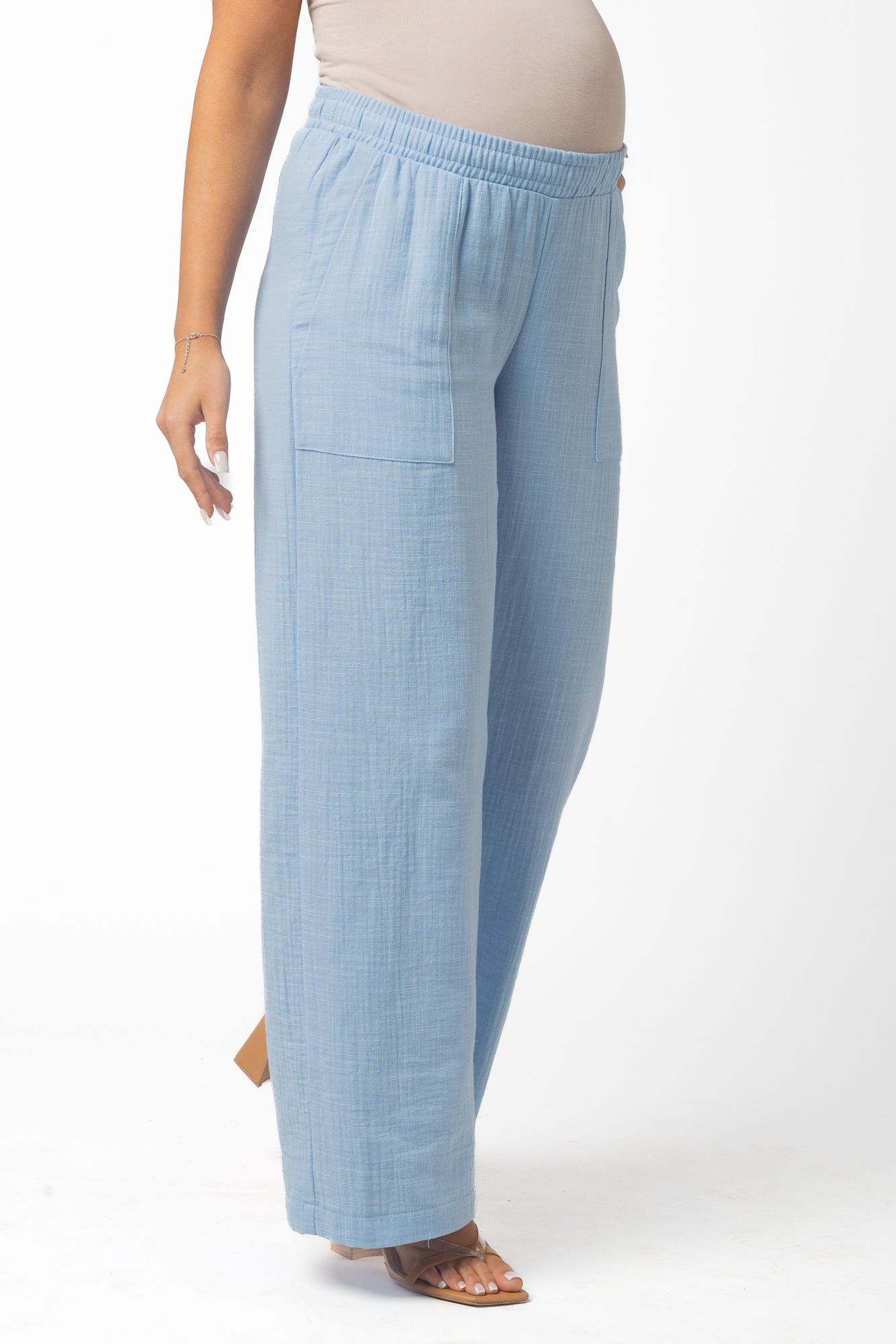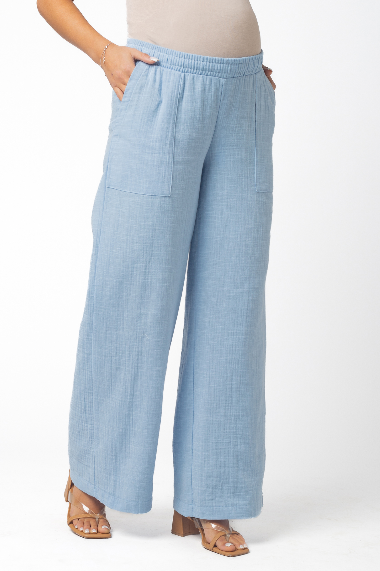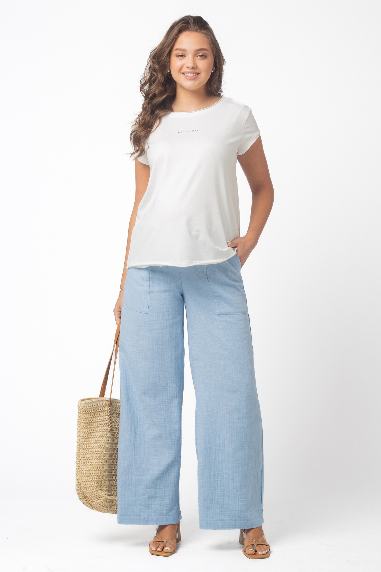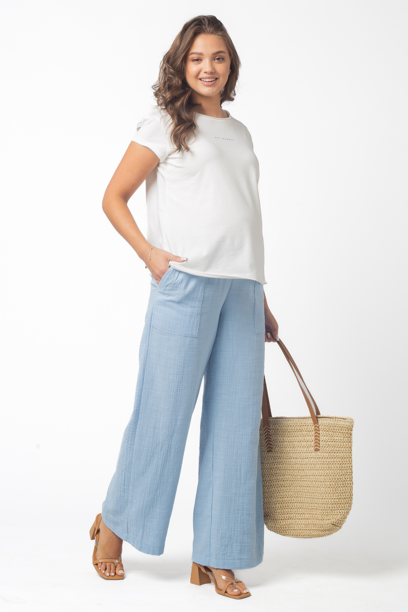 Модные женские брюки для беременных выполнены из премиального натурального 100% хлопка. Ткань отличается уникальной мягкостью и неповторимой фактурой, которая придаст вашему образу особое очарование. Летние брюки имеют свободный широкий крой, стандартную длину. По бокам на бедрах удобные прорезные карманы. Модель с низкой посадкой, на мягкой широкой резинке, которая не сдавливает растущий животик. В поясе предусмотрена кулиска, которая позволяет регулировать его объем: носить брюки можно на любом месяце беременности. Это отличный повседневный вариант для будущей мамы на лето. Модель подойдет для прогулок и отдыха, посещений женской консультации, станет яркой частью офисного образа. Кроме того, широкие летние брюки можно выбрать как наряд на торжественную выписку из роддома. В линейке представлено несколько однотонных расцветок.