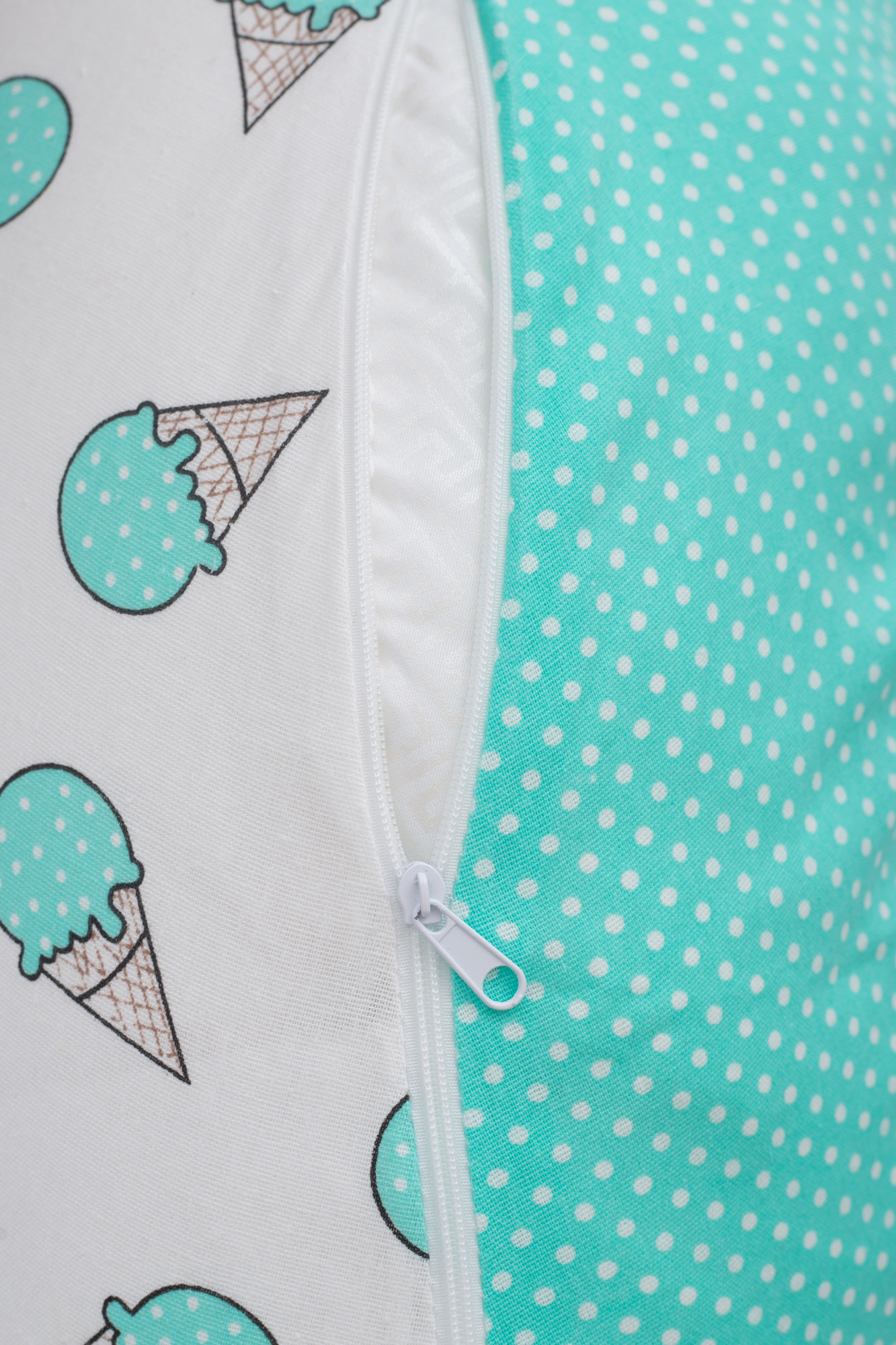 Наволочка из бязи на потайной молнии для подушки С-образной формы (200 см). Перед первым применением подушки следует постирать наволочку.