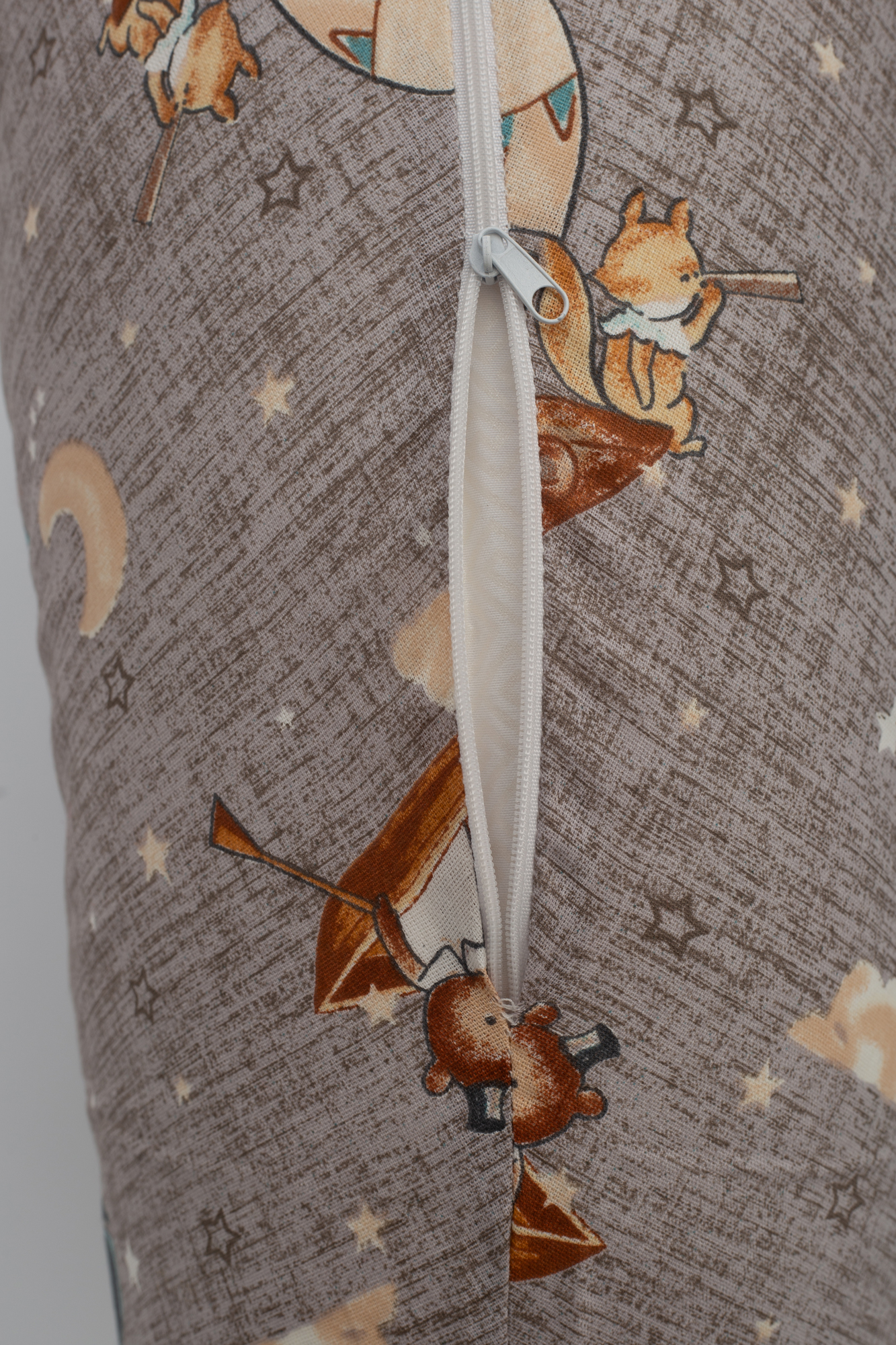 Наволочка из бязи на потайной молнии для подушки С-образной формы (200 см). Перед первым применением подушки следует постирать наволочку.