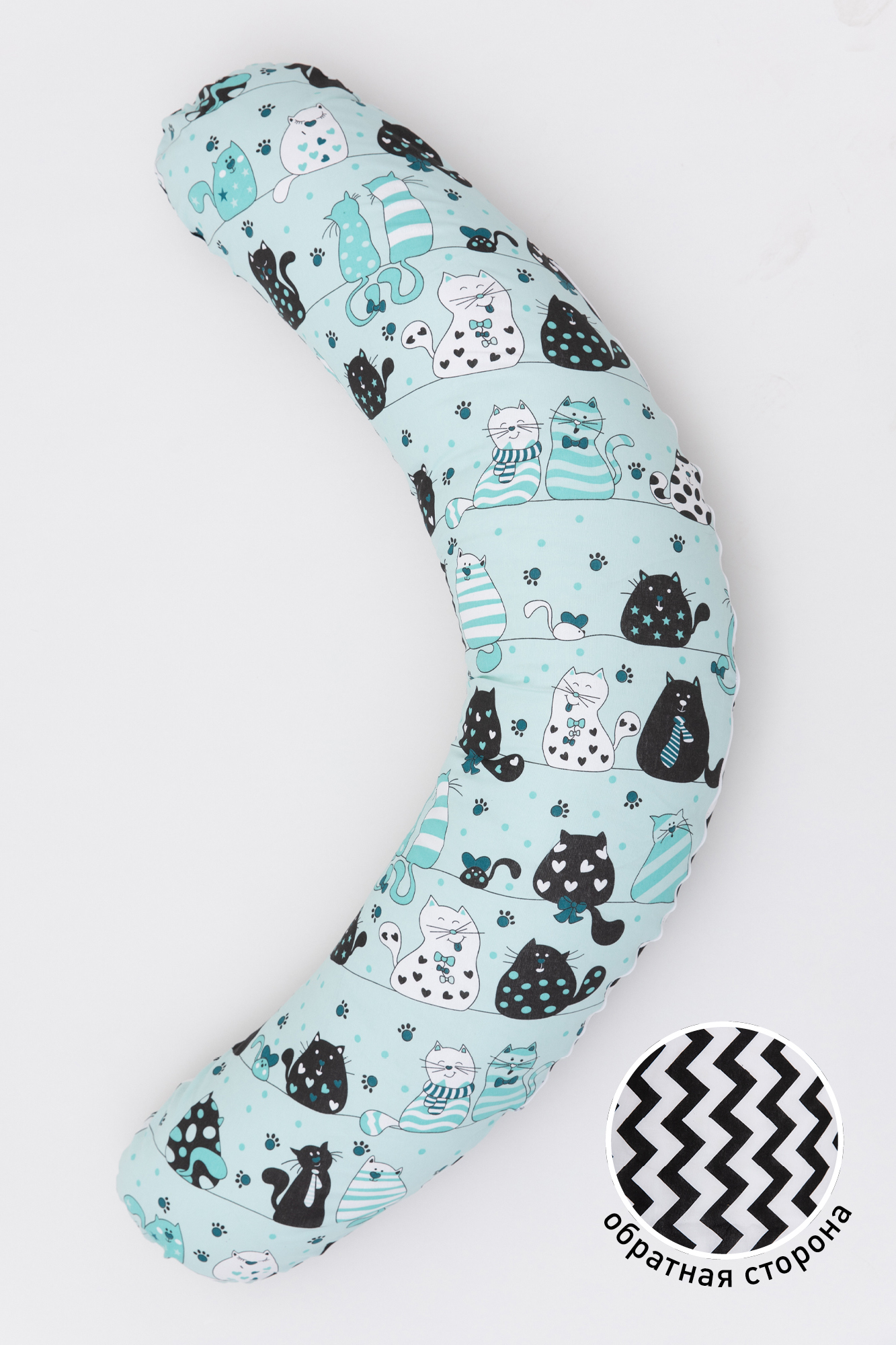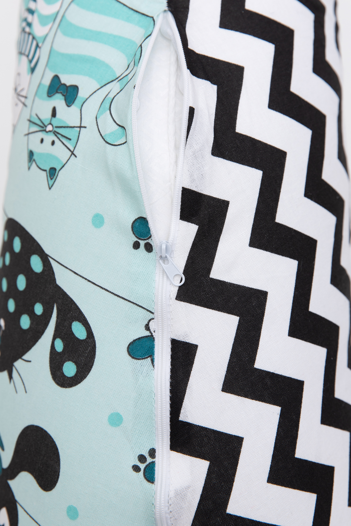Наволочка на подушку C-200 12273 коты мята/зигзаг