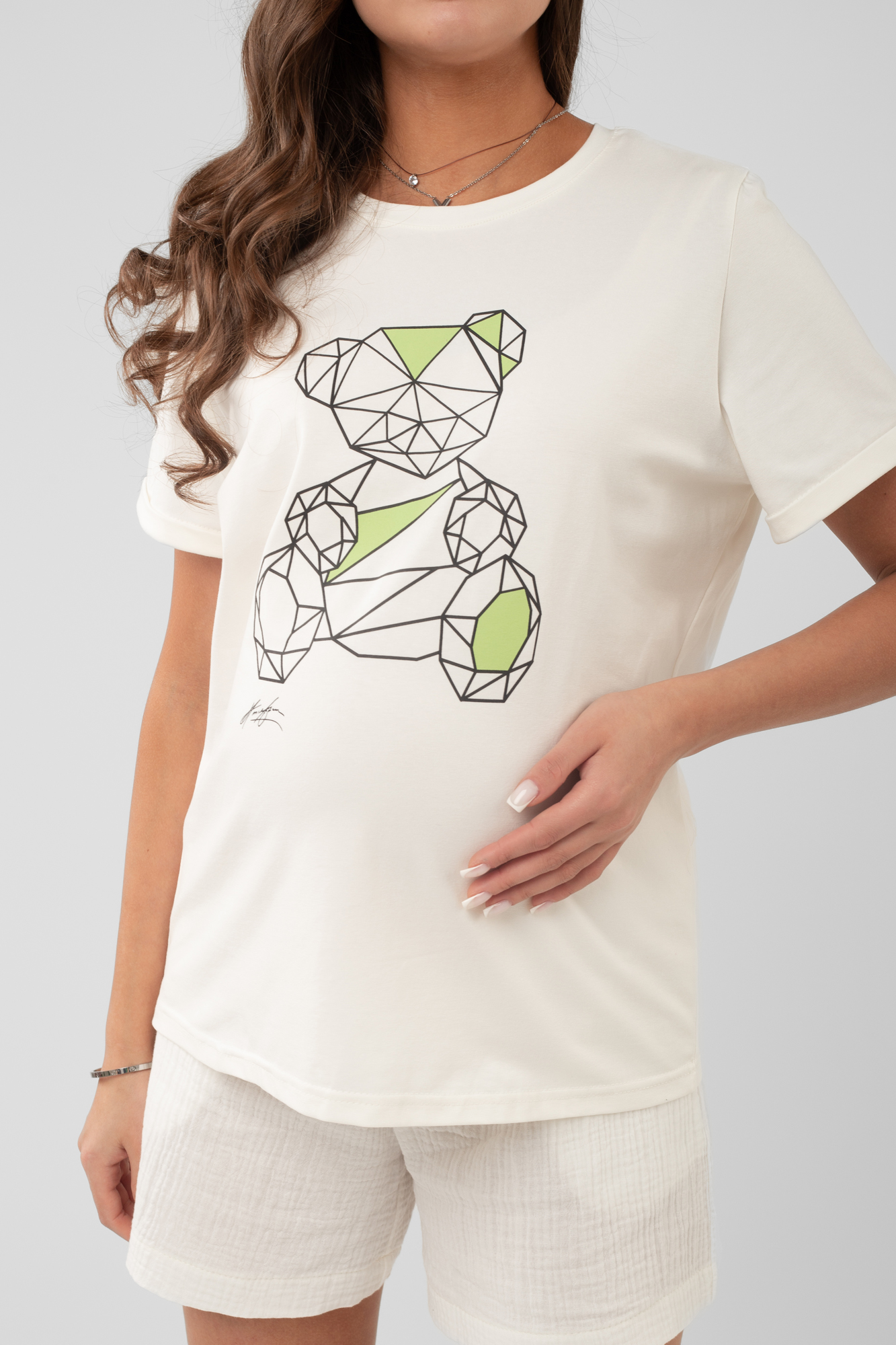 Футболка для беременных 18116 принт контурный мишка