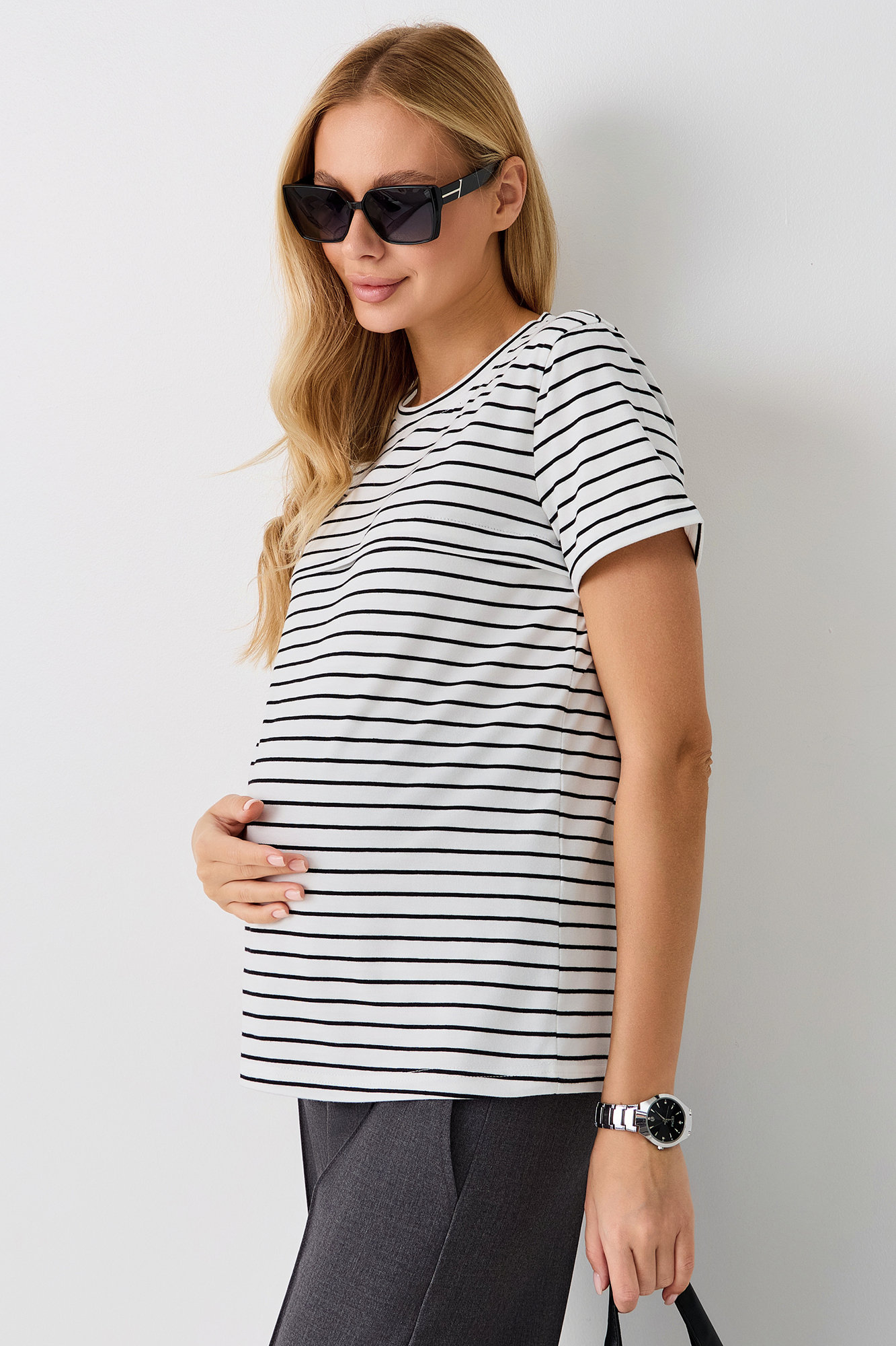 Футболка для беременных и кормящих 18072 бело-черная полоса