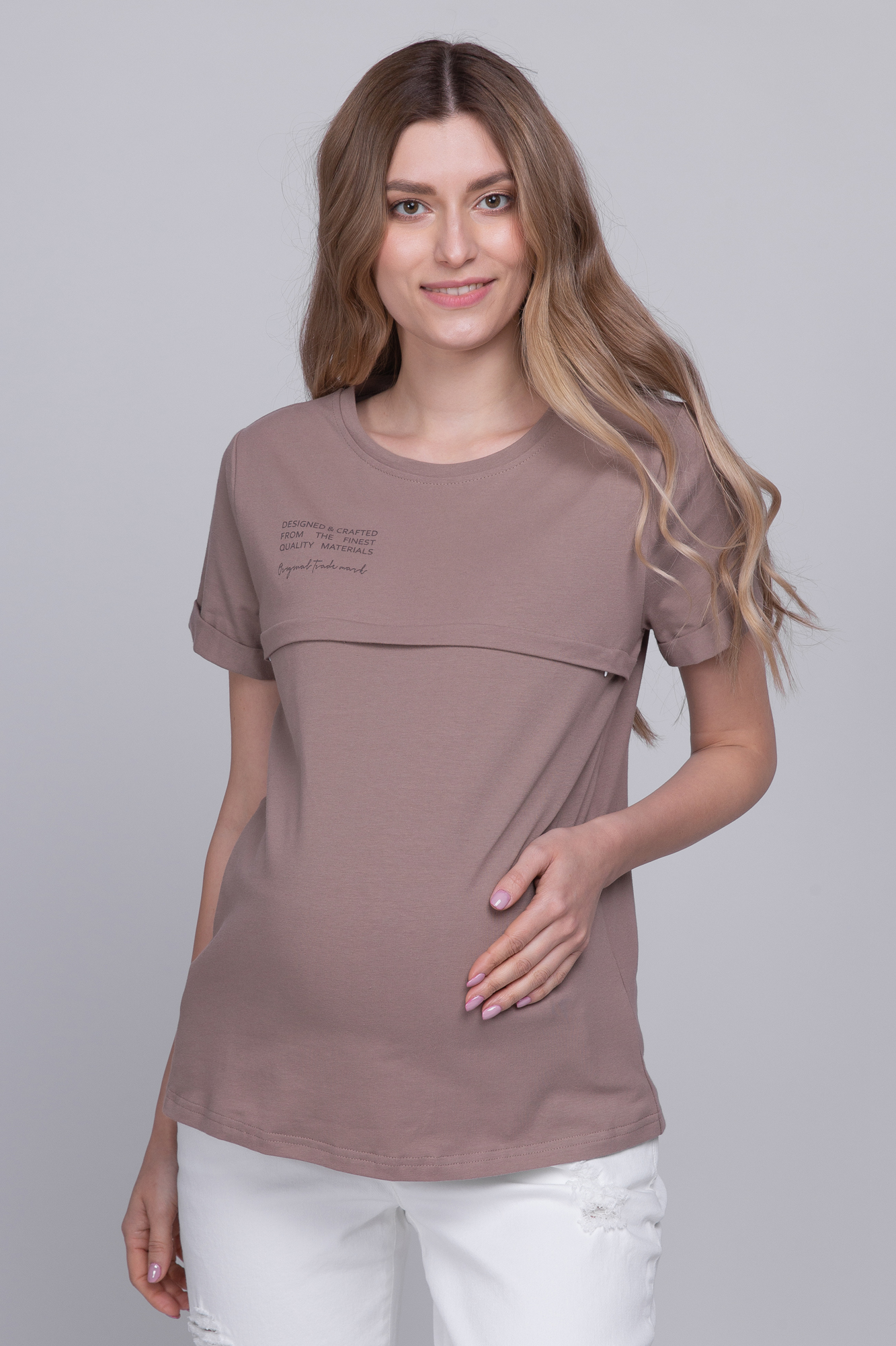 Футболка для беременных и кормящих из высококачественного хлопкового трикотажа. Особый крой обеспечивает идеальную посадку на всем протяжении беременности и после родов. Благодаря горизонтальным потайным молниям можно покормить малыша с комфортом в любой ситуации.