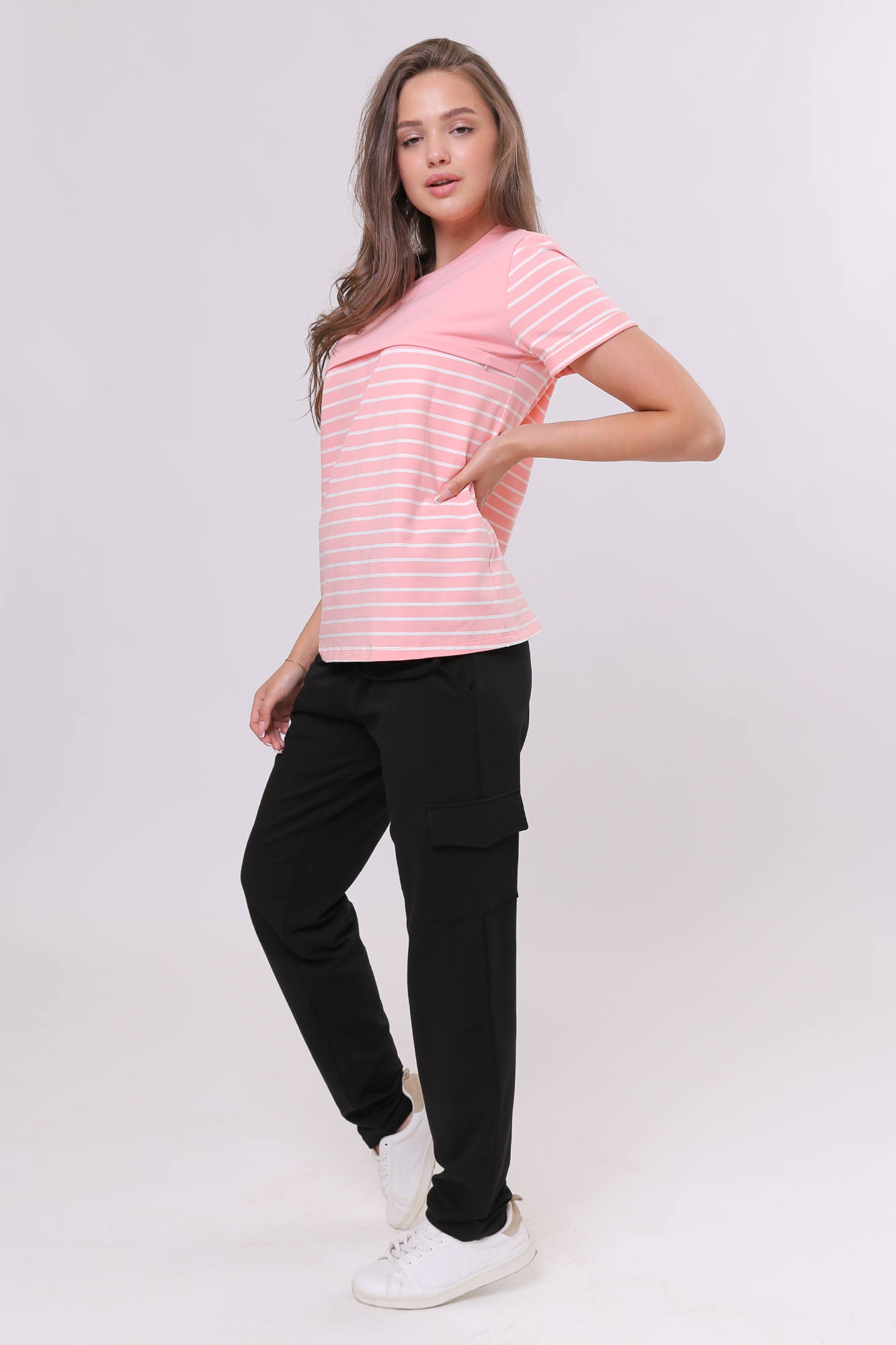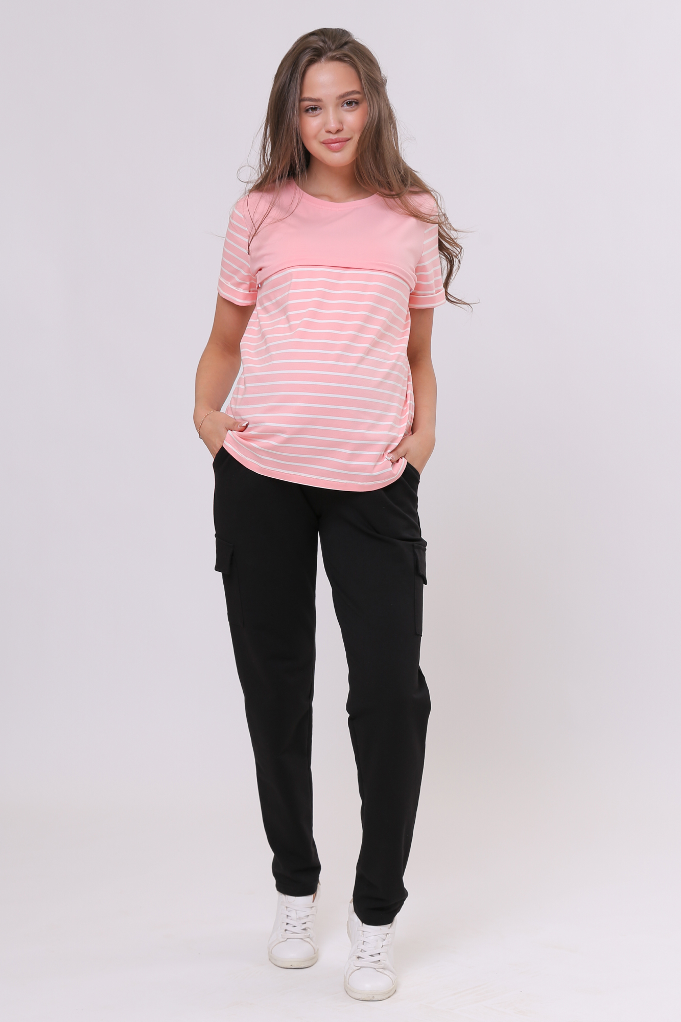 Футболка для беременных и кормящих из высококачественного хлопкового трикотажа. Особый крой обеспечивает идеальную посадку на всем протяжении беременности и после родов. Благодаря горизонтальным потайным молниям можно покормить малыша с комфортом в любой ситуации.