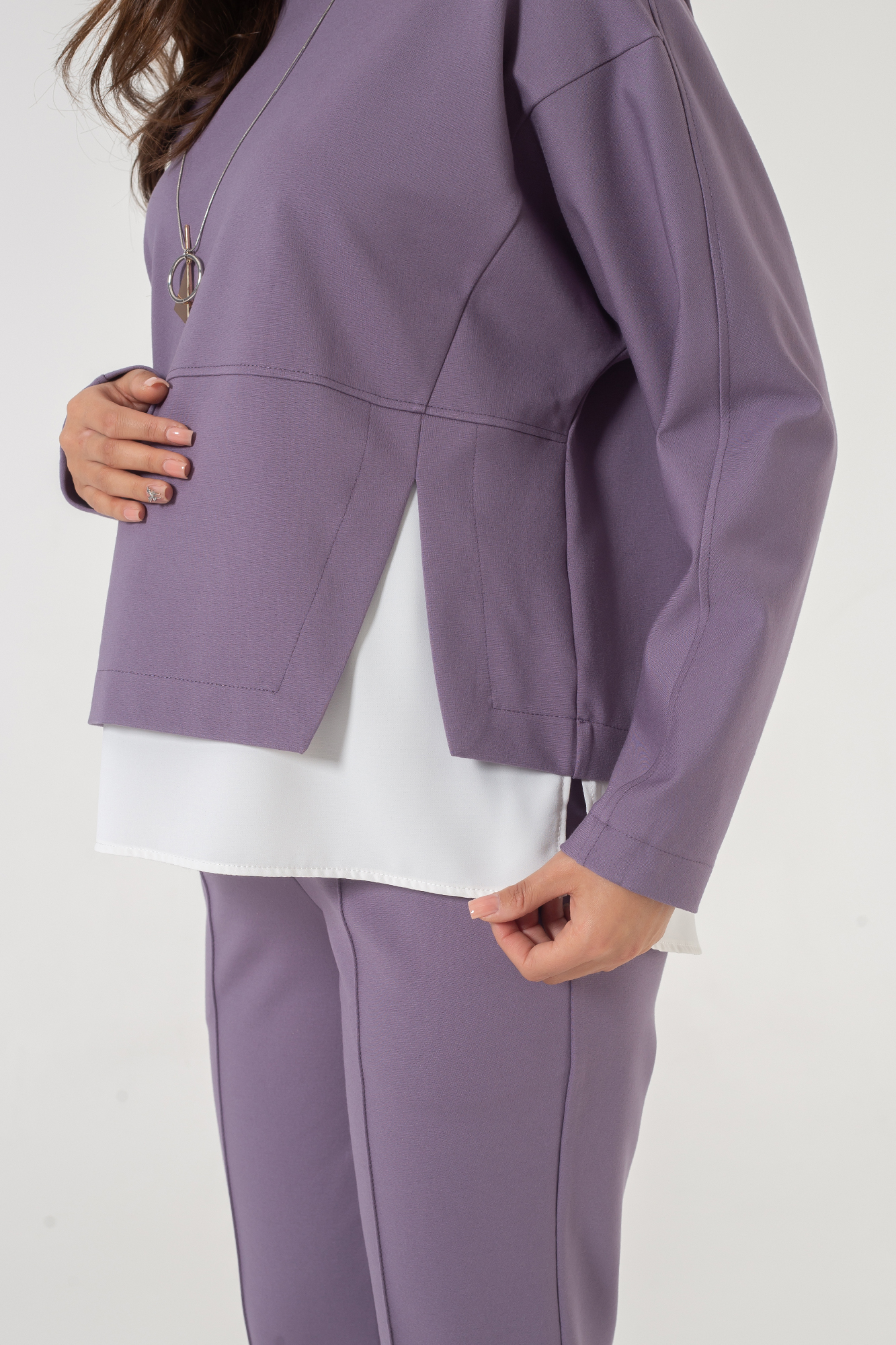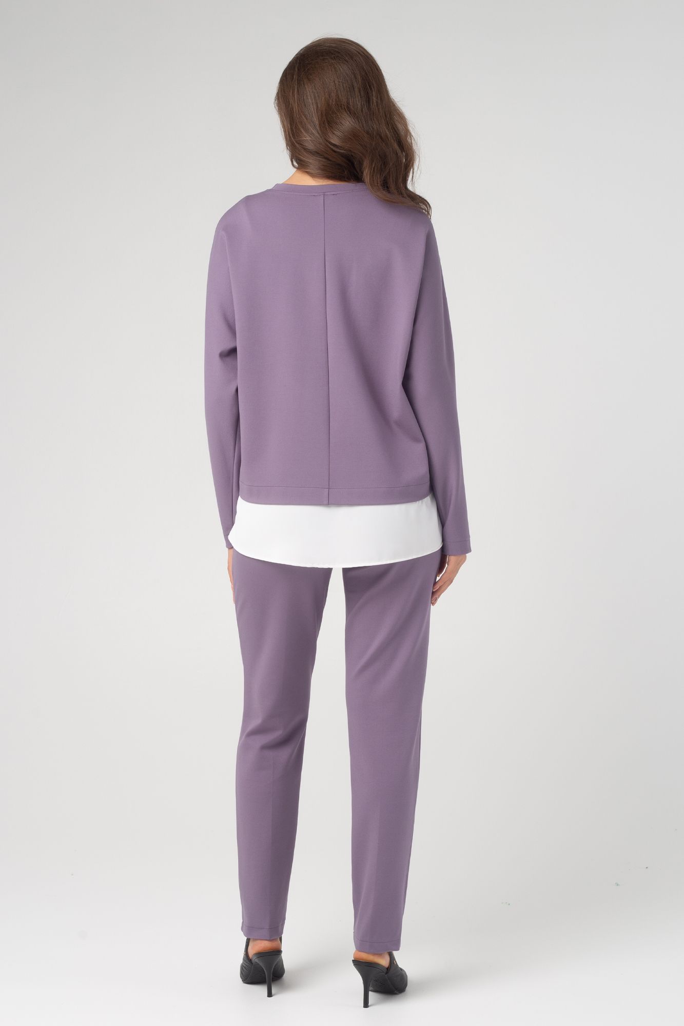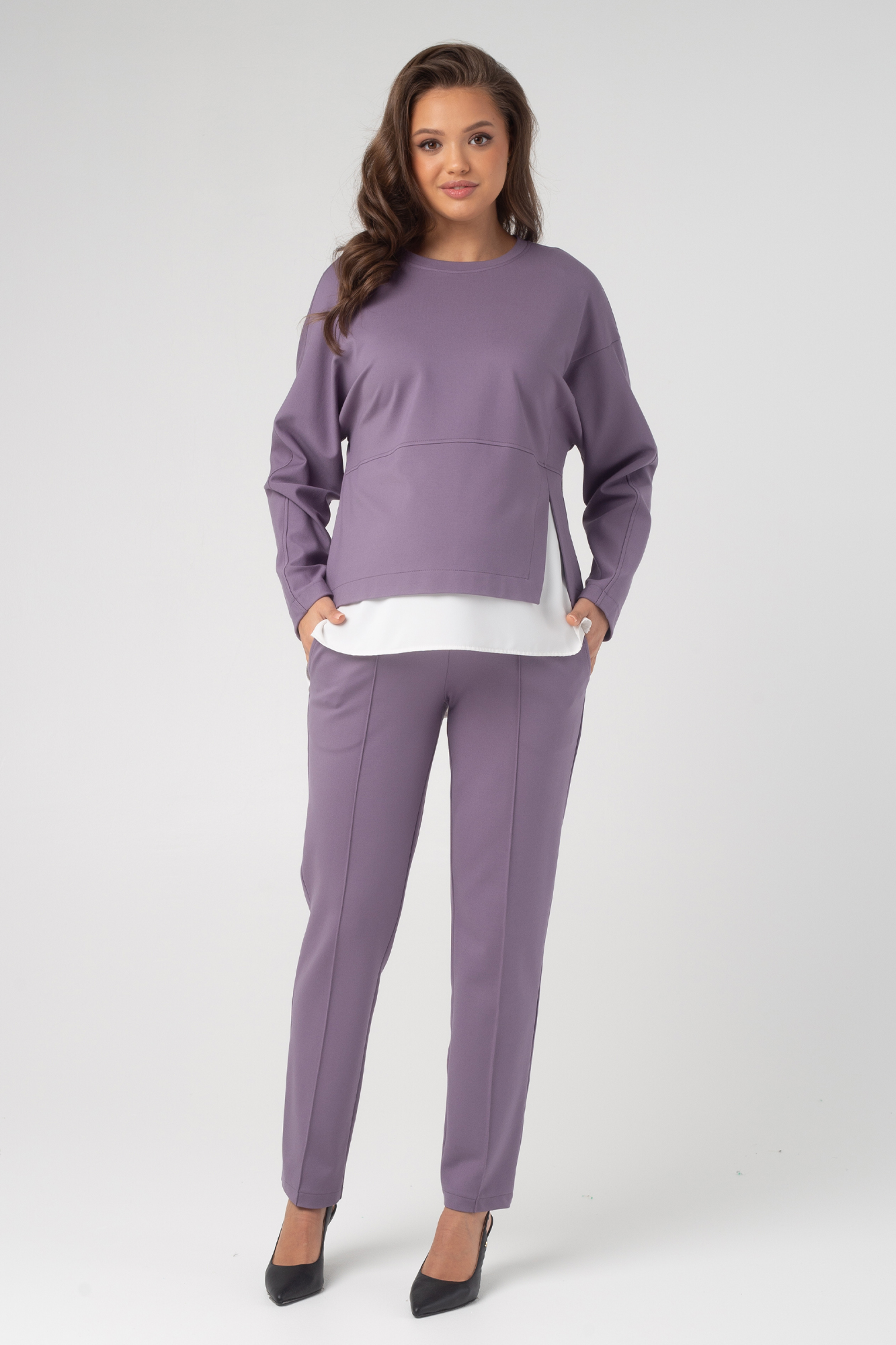 Костюм для беременных выполнен из трикотажа джерси премиум качества. Оригинальный брючный костюм для беременных придётся по вкусу будущим мамам, предпочитающим деловой стиль. Материал на основе вискозы обладает отменной износостойкостью, не покрывается катышками и не мнется. Джемпер трикотажный двухслойный, свободного кроя, с асимметричным боковым разрезом. Рукава изделия длинные, вырез горловины круглый. Брюки зауженные, стандартной длины, с высокой посадкой. Широкий эластичный пояс мягко поддерживает животик, а регулировка объёма позволяет носить костюм в течение всей беременности и после рождения ребёнка.
