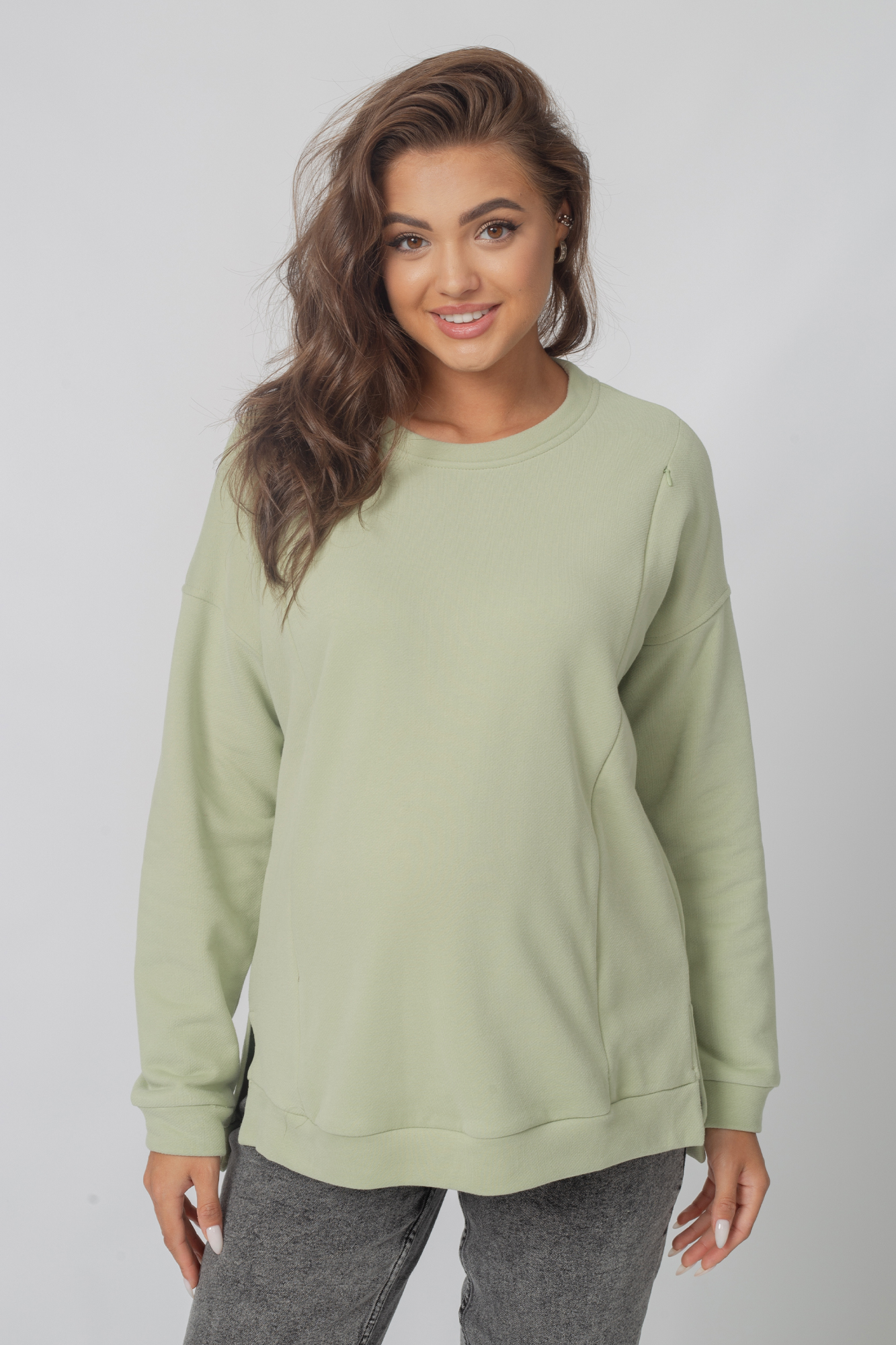 Свитшот для беременных и кормящих выполнен из высококачественного трехниточного футера. Модель со спущенной линией плеча, разрезами по бокам. Благодаря специальному крою этот джемпер станет незаменимым предметом гардероба на протяжении всего периода беременности и после родов. Вертикальные потайные молнии позволят покормить малыша с комфортом в любой ситуации.