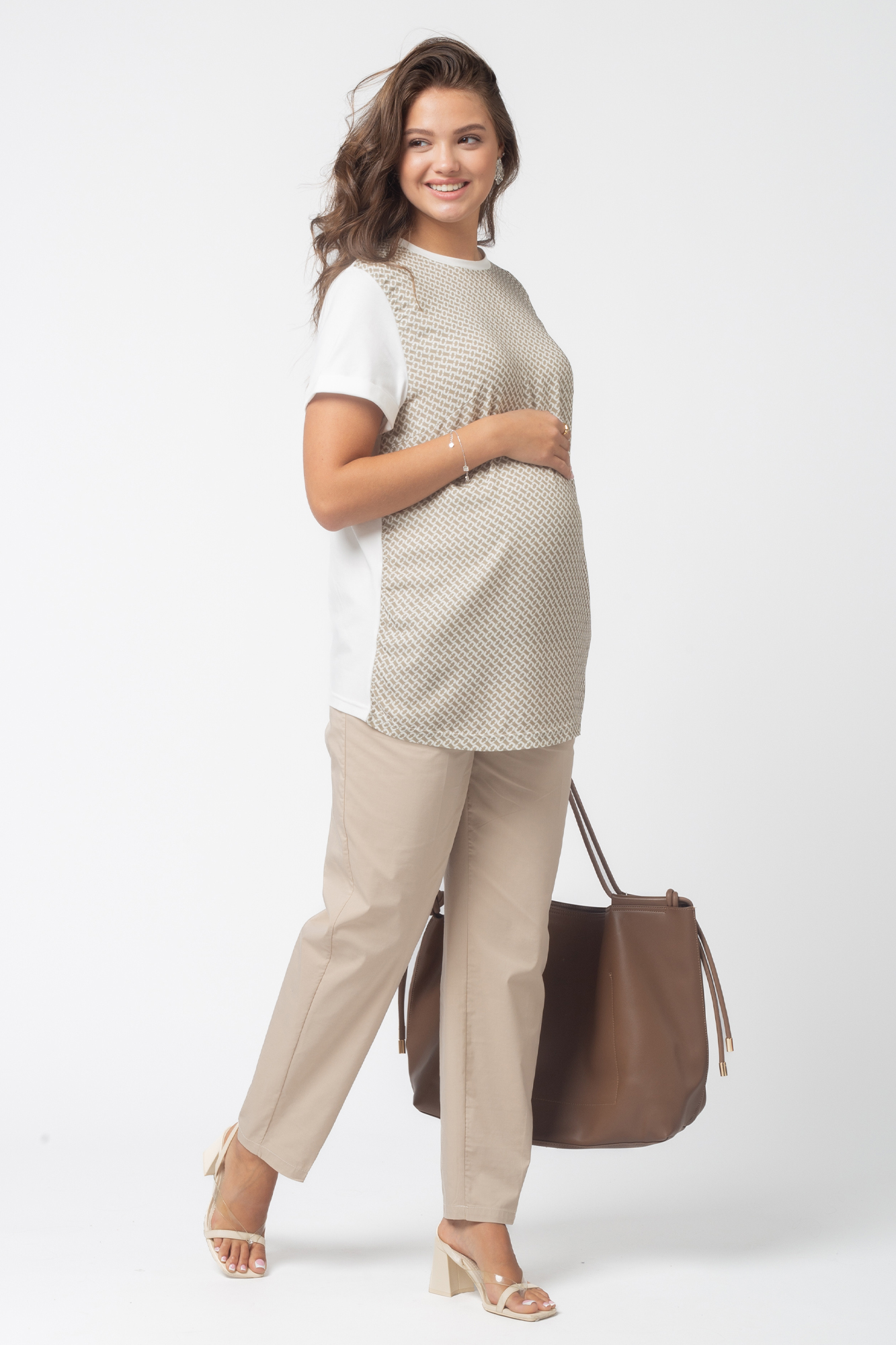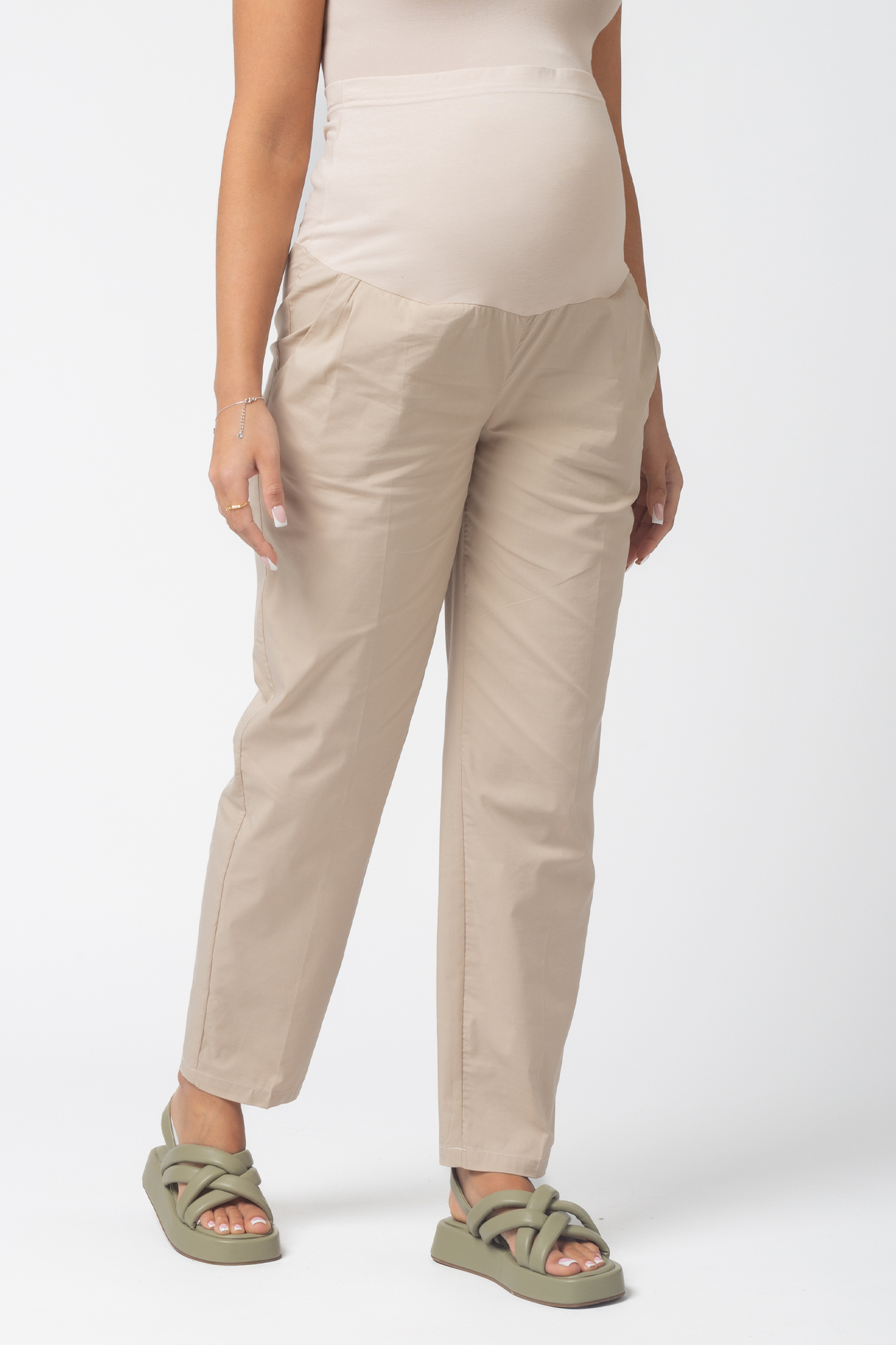 Летние брюки из высококачественного поплина для будущих мам. Брюки с эластичным бандажом обеспечат комфорт на протяжении всей беременности. Объем регулируется с помощью перфорированной резинки, перестегивающейся на пуговицу, продетой в верхнюю часть трикотажной вставки. Изделие выполнено из легкого дышащего материала - идеальный вариант в жаркую погоду.