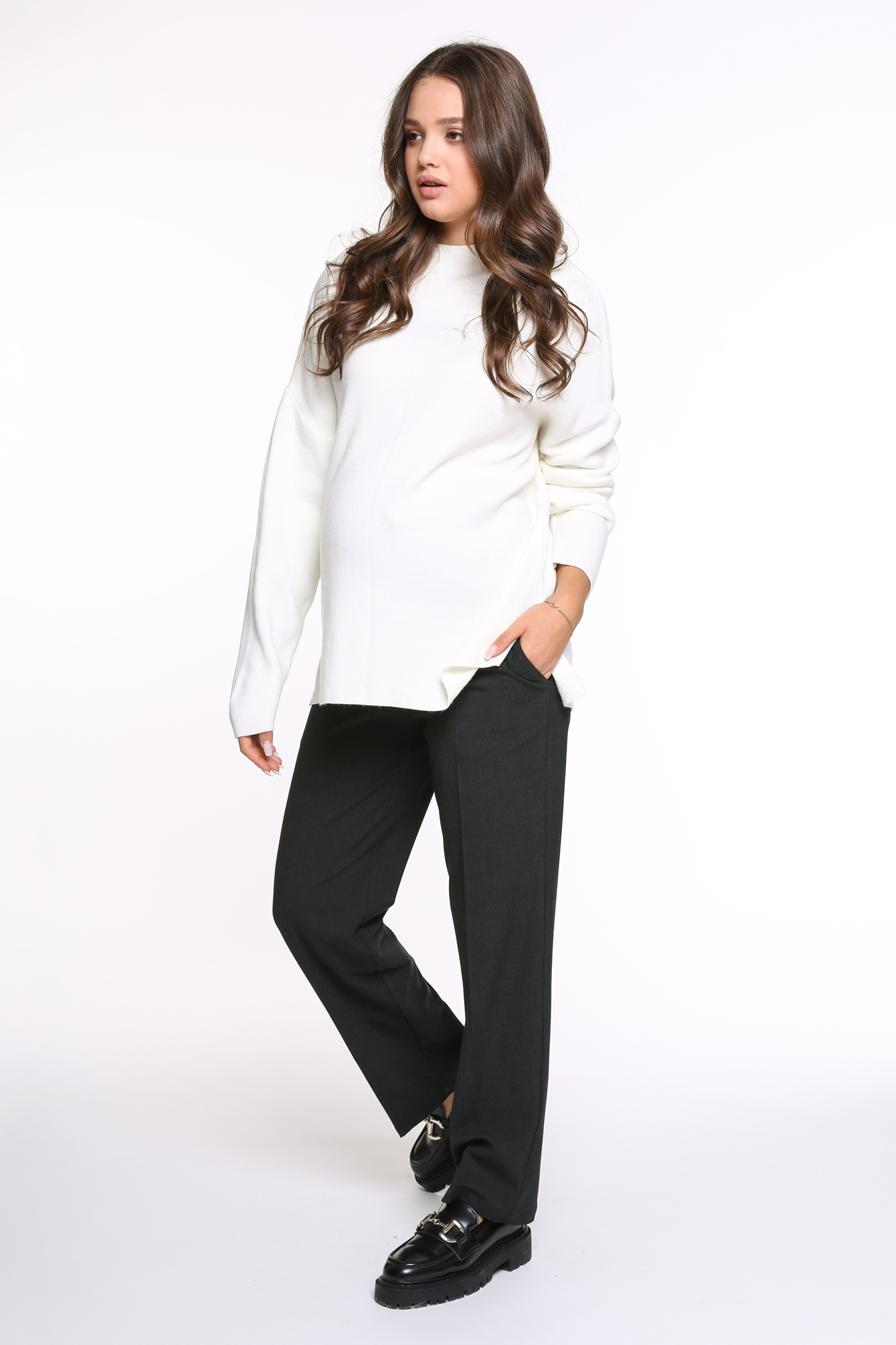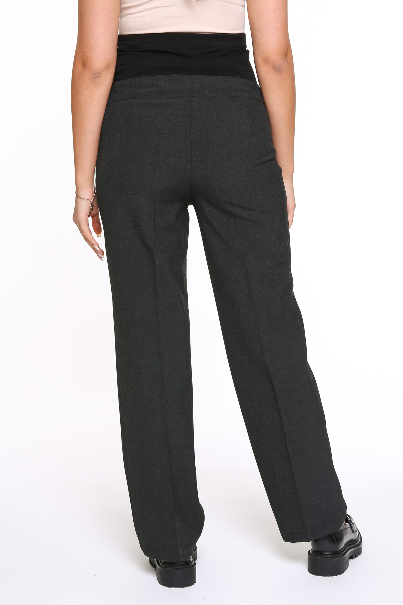Прямые брюки из для беременных из плотного габардина. Высококачественная ткань не пиллингуется, обладает высокой износостойкостью, проста в уходе. Высокий трикотажный бандаж не сдавливает, мягко и деликатно поддерживает растущий животик. Детали: скошенные карманы, регулировка объема для животика осуществляется при помощи резинки, продетой в верхнюю часть брюк. В зависимости от подобранных дополнений их можно носить в офис, на торжество и просто каждый день. Осенние теплые брюки станут незаменимой частью базового гардероба будущей мамы.