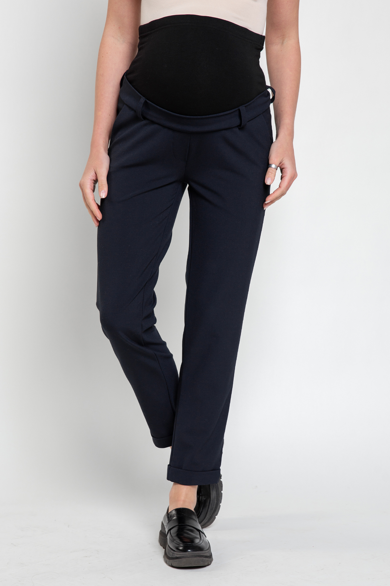 Брюки из высококачественного трикотажа для будущих мам. Детали: высокий эластичный бандаж, скошенные карманы, регулировка объема для животика осуществляется при помощи резинки, продетой в пояс брюк. В зависимости от подобранных дополнений они могут стать частью и офисного костюма, и одежды для непринуждённого отдыха, и наряда для торжественного события.
