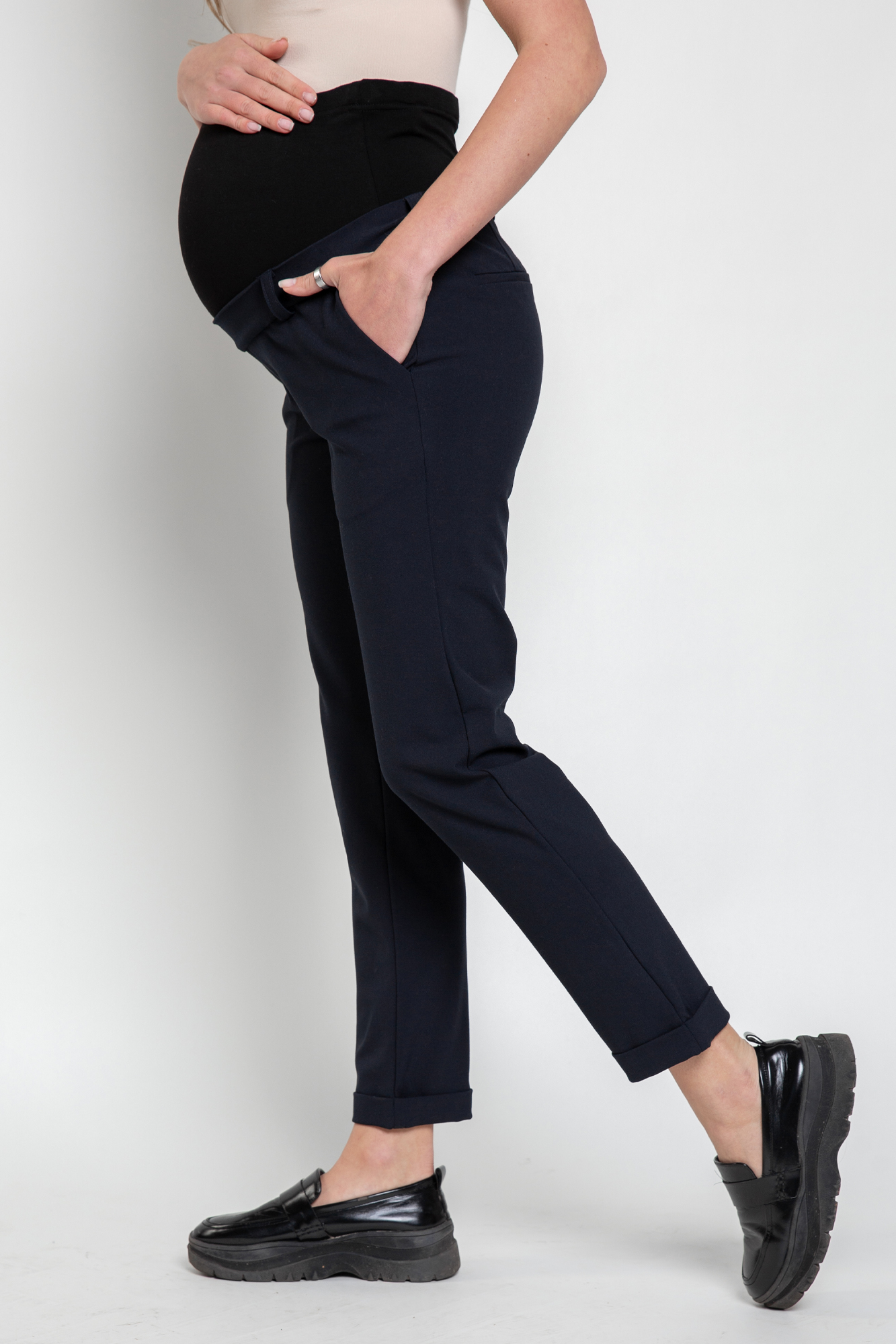 Брюки из высококачественного трикотажа для будущих мам. Детали: высокий эластичный бандаж, скошенные карманы, регулировка объема для животика осуществляется при помощи резинки, продетой в пояс брюк. В зависимости от подобранных дополнений они могут стать частью и офисного костюма, и одежды для непринуждённого отдыха, и наряда для торжественного события.